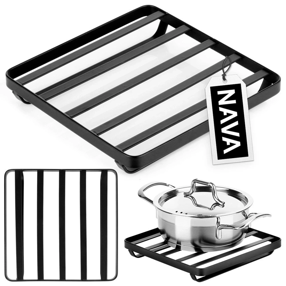 Metalowa podkładka na stół pod gorące naczynia. Podkładka jest stabilna i dobrze się prezentuje. Zdecydowanie ułatwi pracę w kuchni i ochroni blat przed zniszczeniem. Niezwykle przydatna w domu do odstawiania garnków po zakończonym gotowaniu lub gorących naczyń wyciągniętych bezpośrednio z piekarnika. Oryginalny produkt greckiej marki NAVA z linii akcesoriów kuchennych Misty. Wyprodukowano zgodnie z europejskimi standardami.