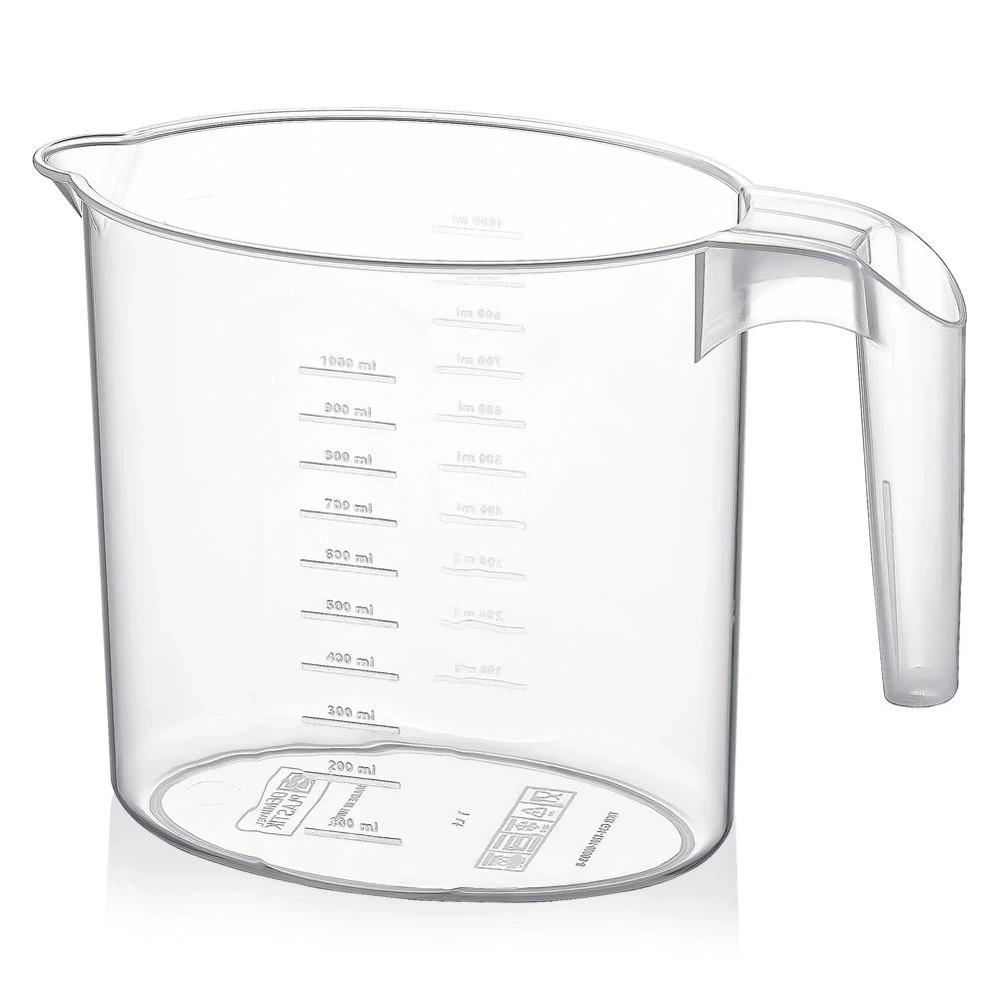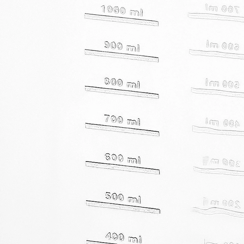 - WYGODNY - Posiada wygodny uchwyt wykonany z tworzywa w kolorze białym. Dzięki uchwytowi w łatwy sposób przeniesiemy dzbanek oraz nalejemy napój. Dzbanek posiada miarkę od 100 do 1000 ml, która umożliwi odmierzenie odpowiedniej ilości płynów.