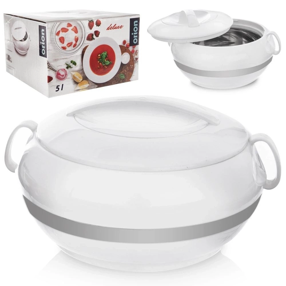 Termomisa do przechowywania potraw. Utrzyma ciepło umieszczonej w niej potrawy. Latem możemy przechowywać w niej lody np. podczas przyjęć w ogrodzie, by uniknąć szybkiego roztopienia lodów. Termomisa jest lekka, co zapewni wygodne przenoszenie. Wewnętrzna, gładka powierzchnia zapewni wygodne mycie. W celu utrzymania dłużej zimnej temperatury w termomisie należy umieścić ją na około godzinę do lodówki przed włożeniem zawartości, chcąc utrzymać dłużej ciepło potraw należy wlać do termomisy gorącą wodę i wylać ją po 1-2 minutach. Oryginalny produkt czeskiej marki Orion. Wyprodukowano zgodnie z europejskimi standardami.