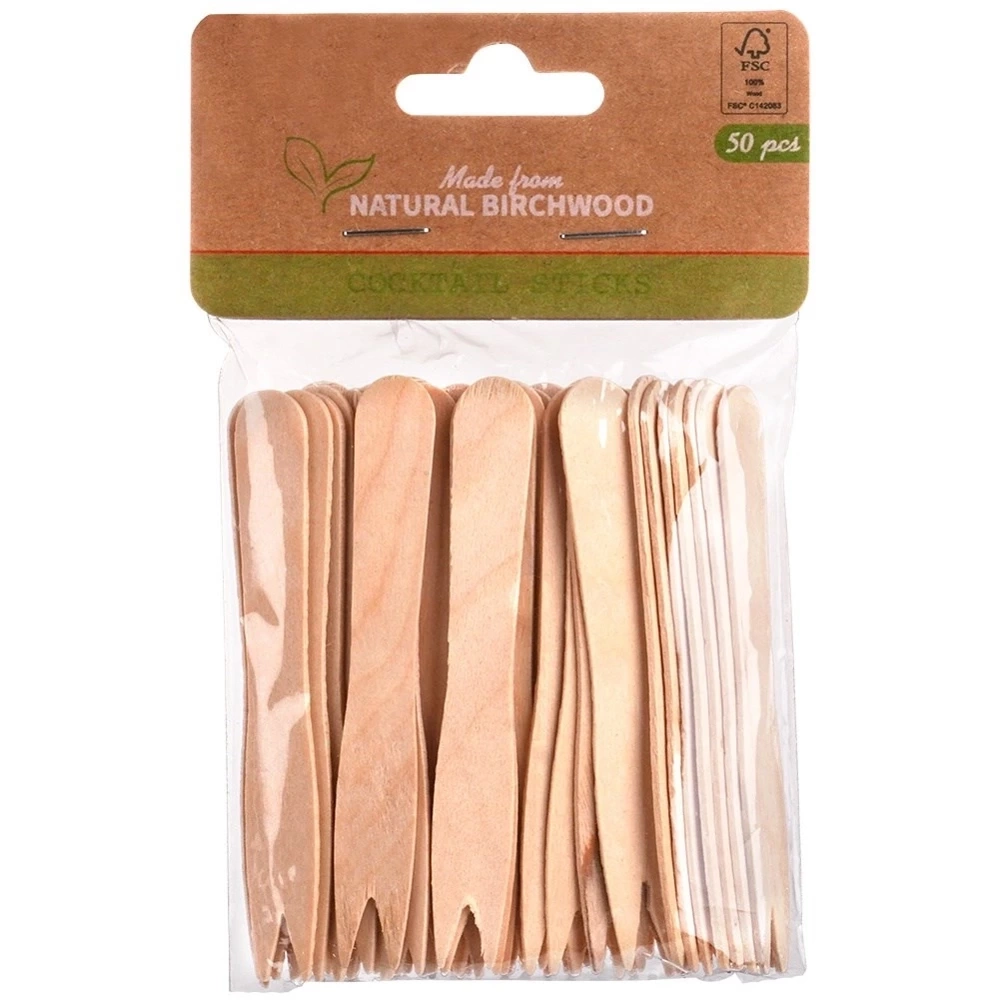 Zestaw 50 sztuk widelczyków do frytek i przekąsek. Widelczyki są jednorazowe. Wykonane z drewna są niezwykle praktyczne i przydatne podczas pikników, wypadów za miasto oraz spotkań w ogrodzie. Przyjazne dla środowiska, są najlepszą alternatywą dla widelczyków plastikowych. Wyprodukowano zgodnie z europejskimi standardami.