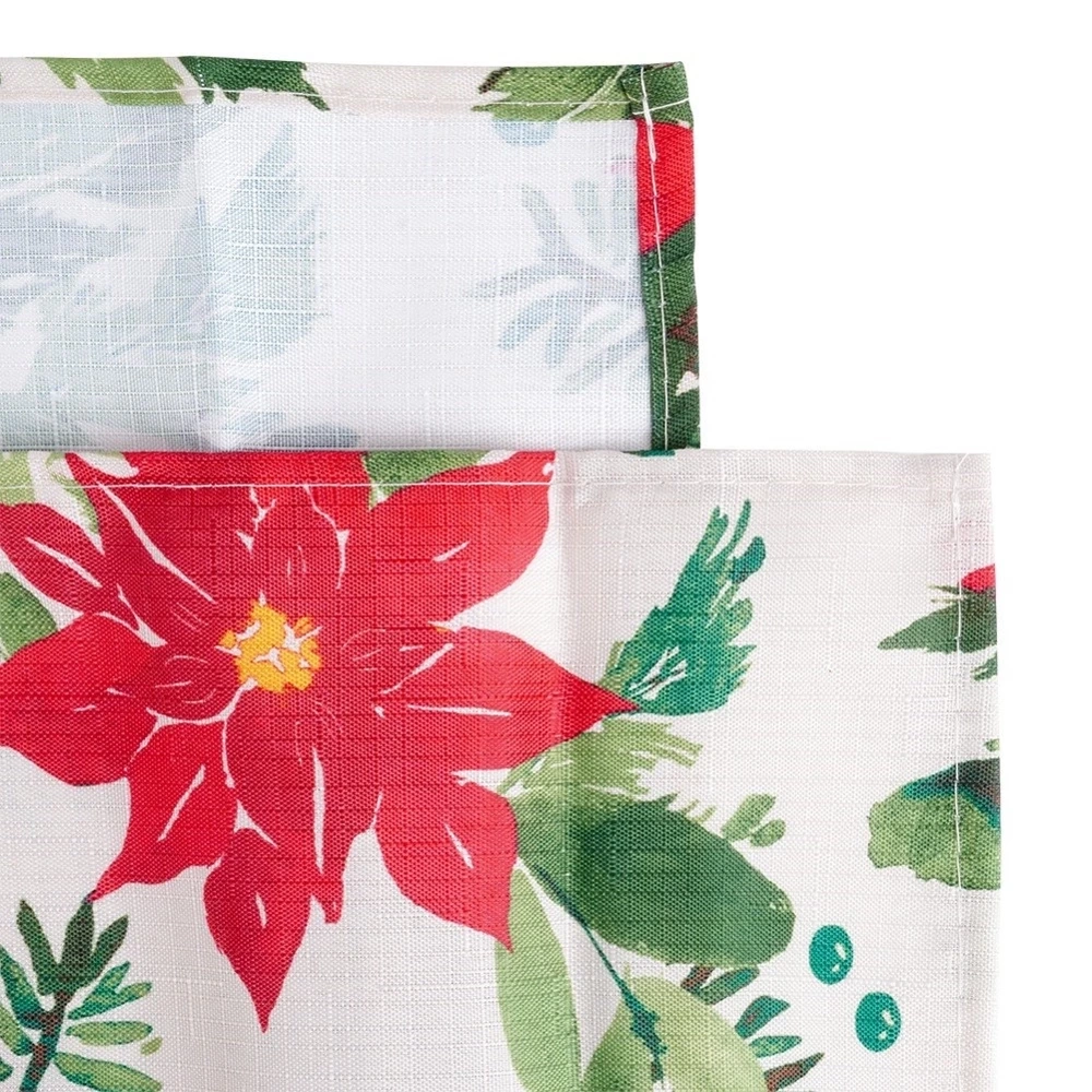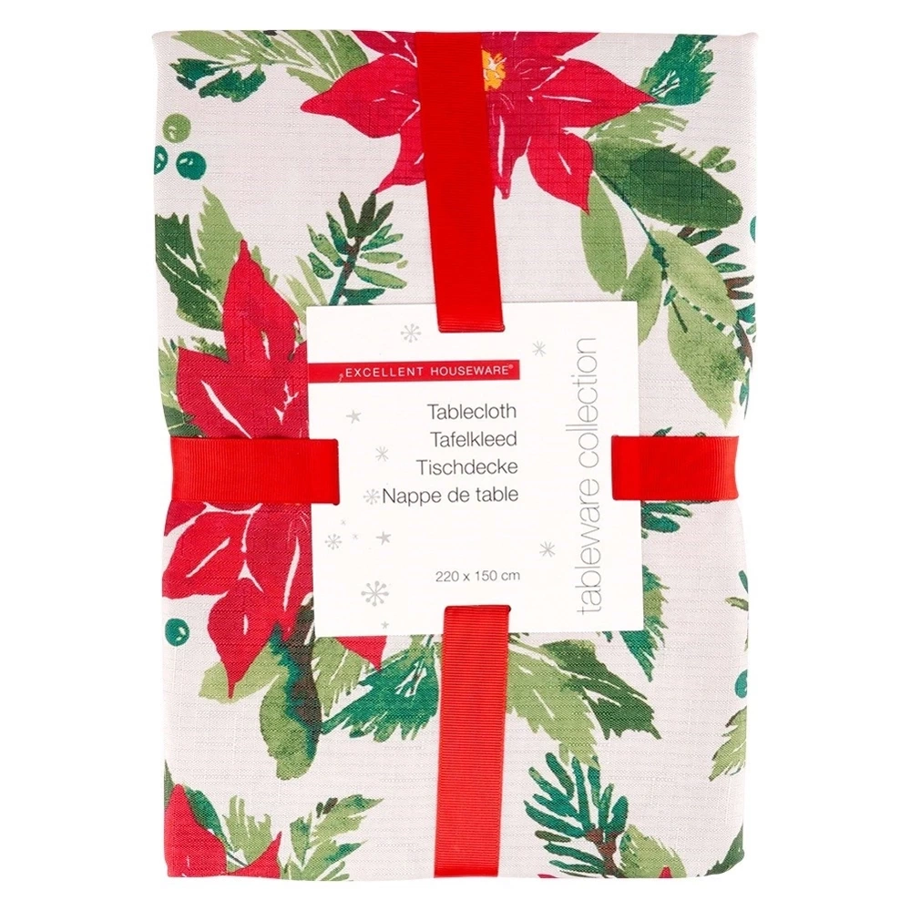 - Trwały i odporny - Obrus wykonany z poliestru w kolorze beżowym z pięknym, świątecznym motywem w zielonym i czerwonym kolorze.
