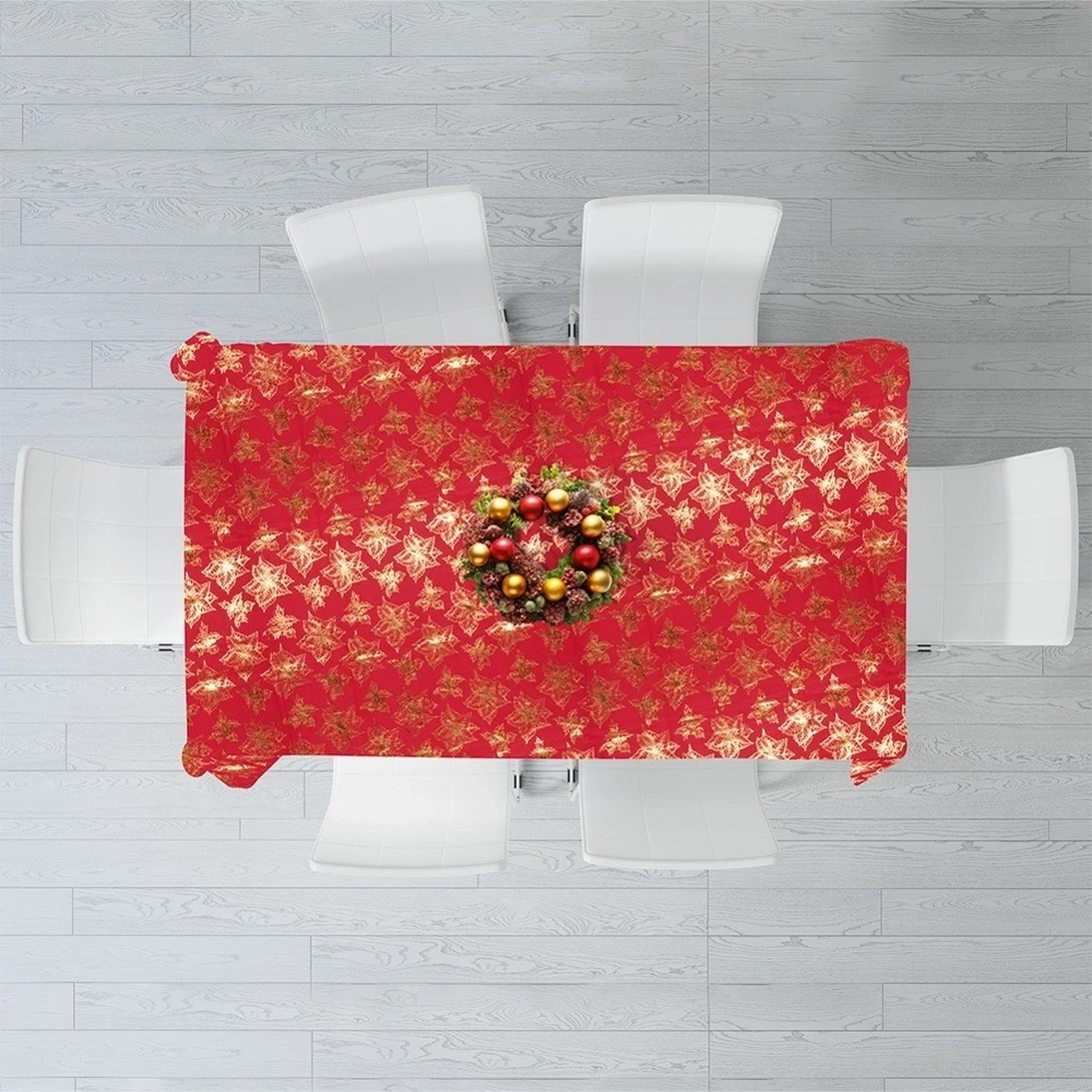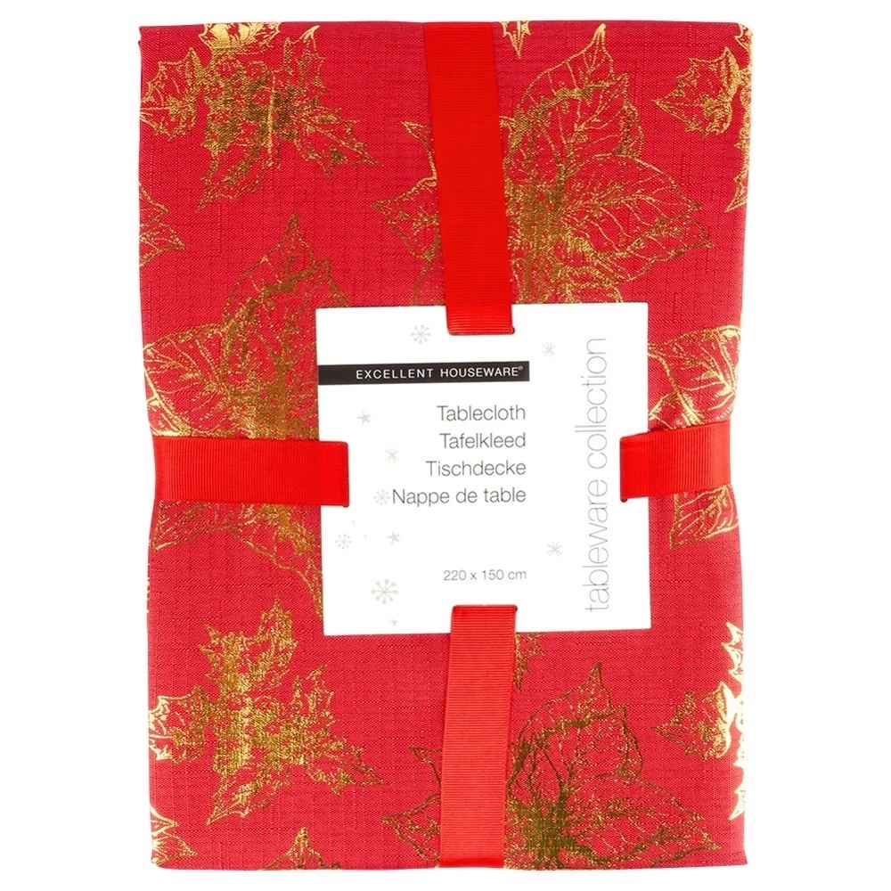 - Trwały i odporny - Obrus wykonany z poliestru w kolorze czerwonym z pięknym, świątecznym motywem w złotym kolorze.