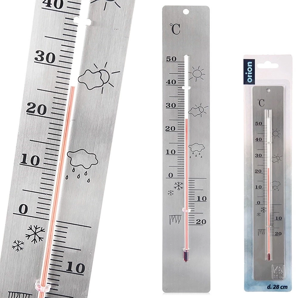- Termometr informuje o aktualnej temperaturze na zewnątrz oraz wewnątrz pomieszczeń. Posiada klasyczny wygląd i wyraźną skalę. Wykonany ze stali nierdzewnej.