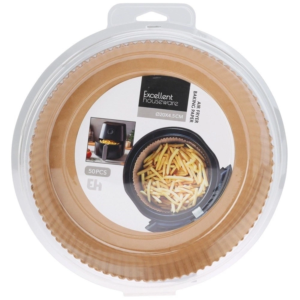 - Zestaw 50 szt. okrągłych, jednorazowych wkładów do frytkownicy Air Fryer. Wykonane z olejowanego papieru, który jest wodoodporny, olejoodporny, a także nieprzywierający.