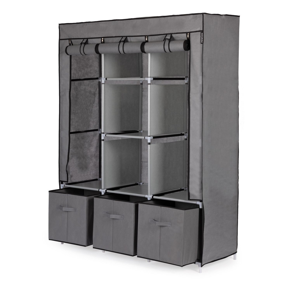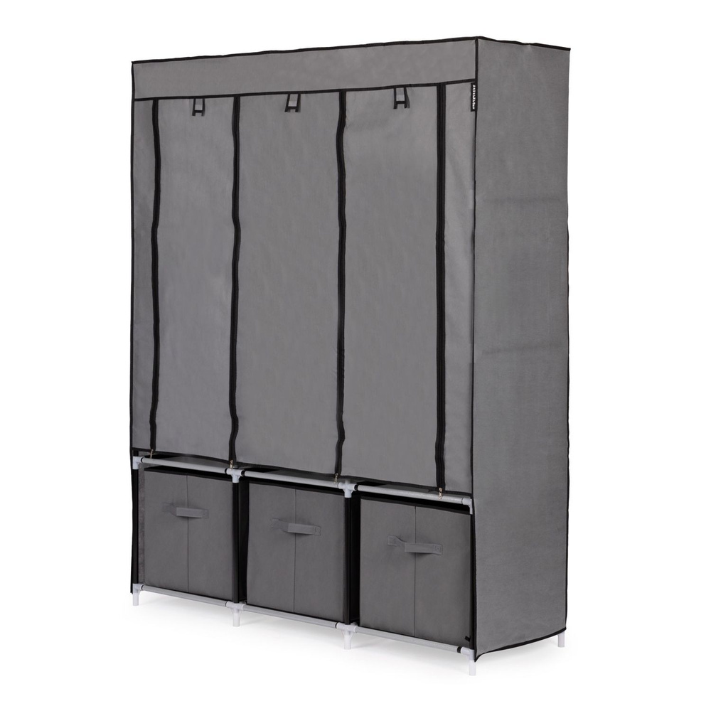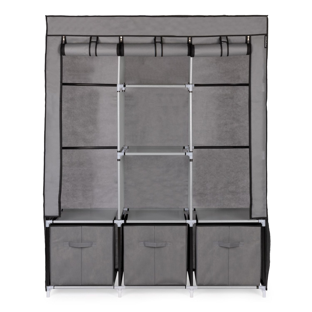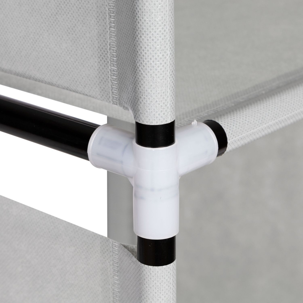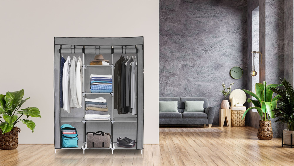 Meble tekstylne to prosty i ekonomiczny sposób na przechowywanie odzieży. Szafa posiada lekką konstrukcję, dlatego jest to idealny zamiennik do tradycyjnych, ciężkich mebli. Produkt jest szybki i łatwy do złożenia i rozłożenia. Metalowy stelaż wykonany jest z wysokiej jakości materiałów, dzięki czemu produkt jest stabilny. Poszycie wykonane jest z oddychającego materiału, zapewniającego wewnątrz odpowiednią cyrkulację powietrza. Dodatkowo półki pokryte są specjalną powłoką, która zapobiega ich zabrudzeniu.