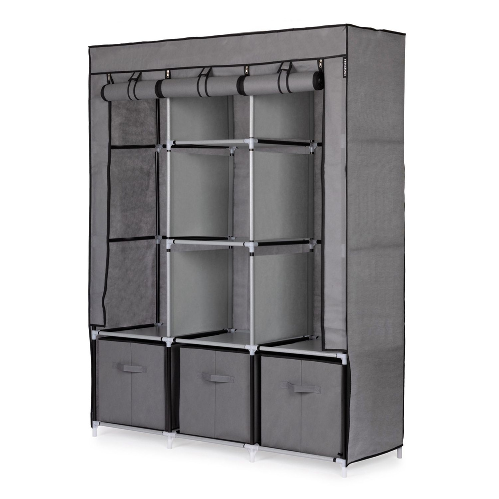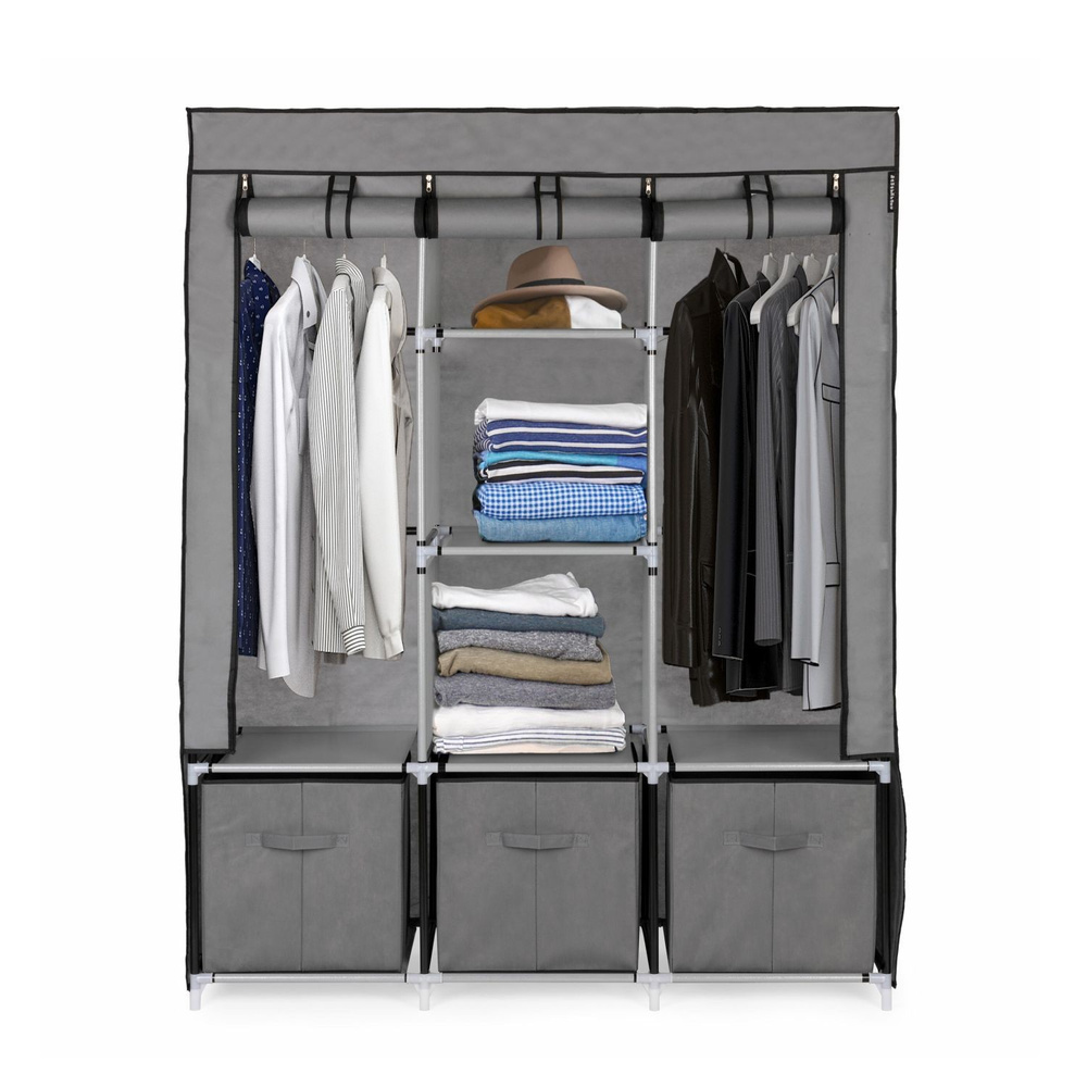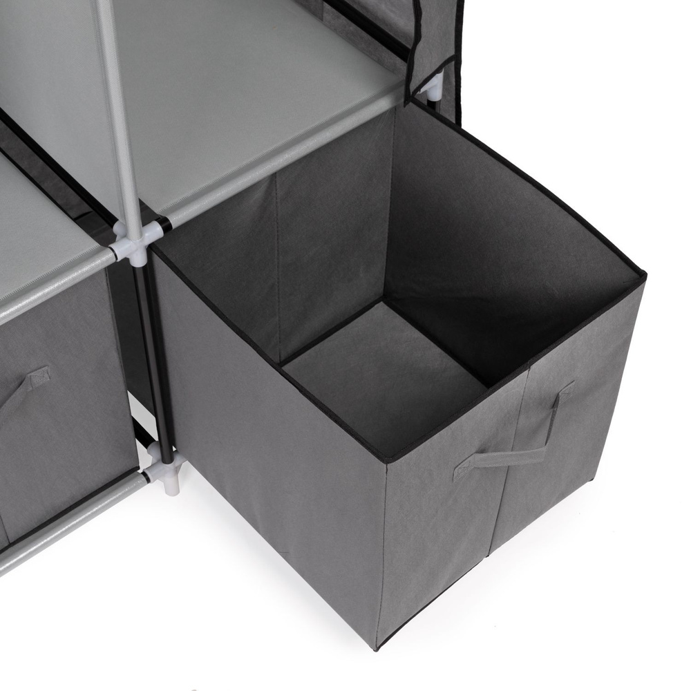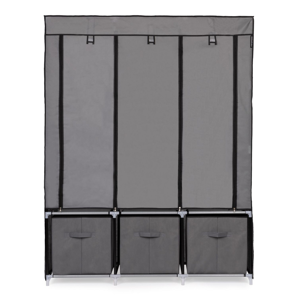 Meble tekstylne to prosty i ekonomiczny sposób na przechowywanie odzieży. Szafa posiada lekką konstrukcję, dlatego jest to idealny zamiennik do tradycyjnych, ciężkich mebli. Produkt jest szybki i łatwy do złożenia i rozłożenia. Metalowy stelaż wykonany jest z wysokiej jakości materiałów, dzięki czemu produkt jest stabilny. Poszycie wykonane jest z oddychającego materiału, zapewniającego wewnątrz odpowiednią cyrkulację powietrza. Dodatkowo półki pokryte są specjalną powłoką, która zapobiega ich zabrudzeniu.