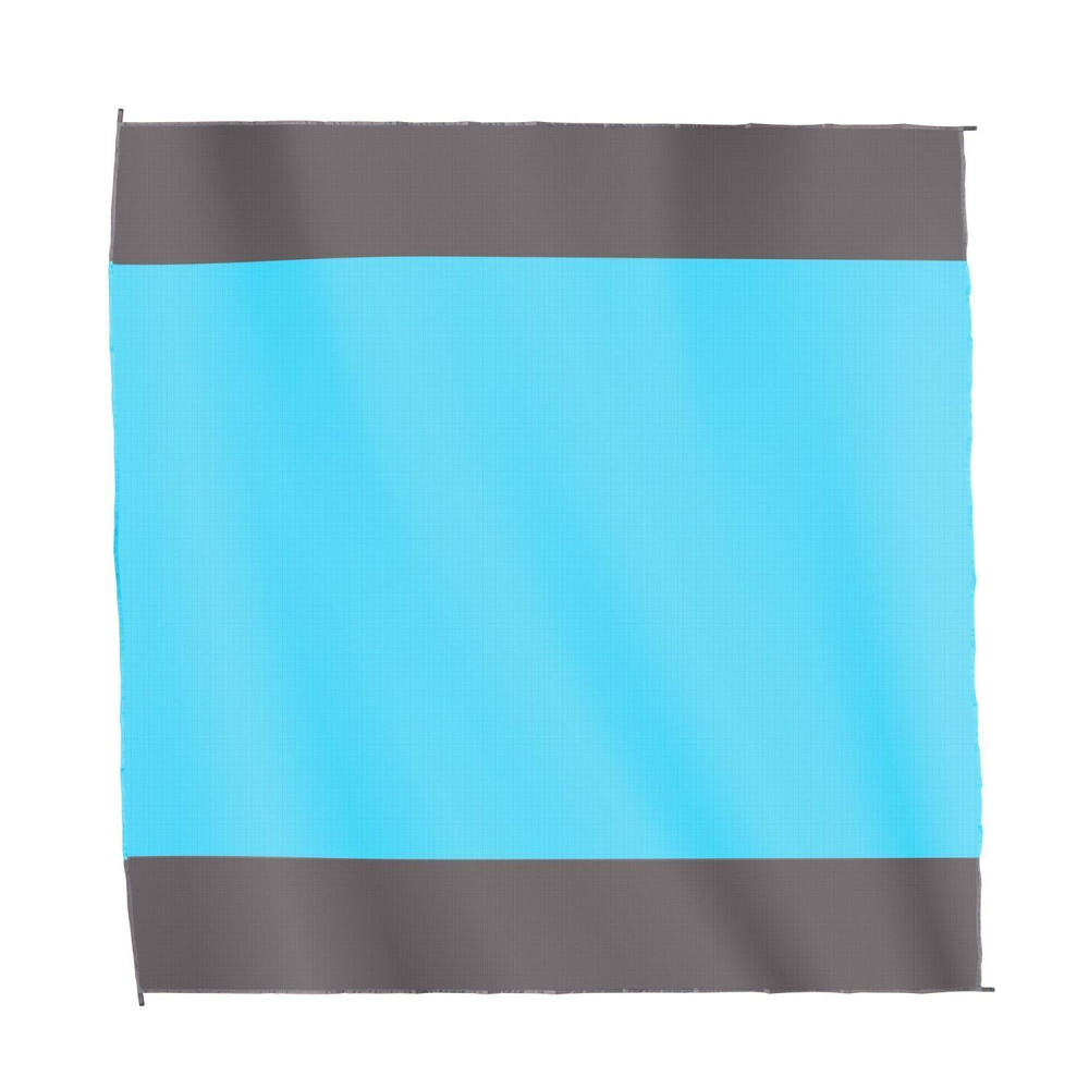 Wodoodporna mata plażowa koc piknikowy 210x200 cm niebieska z grafitowymi paskami