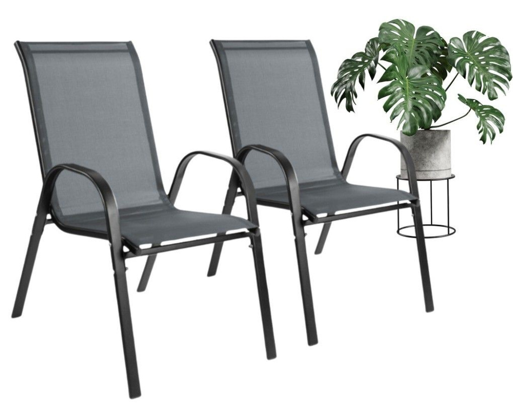 Zestaw 2 krzeseł - nowoczesne metalowe krzesło ogrodowe grafitowe