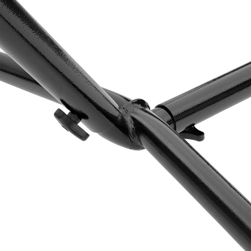Stelaż wykonany został ze stali, pomalowanej proszkowo na kolor czarny.