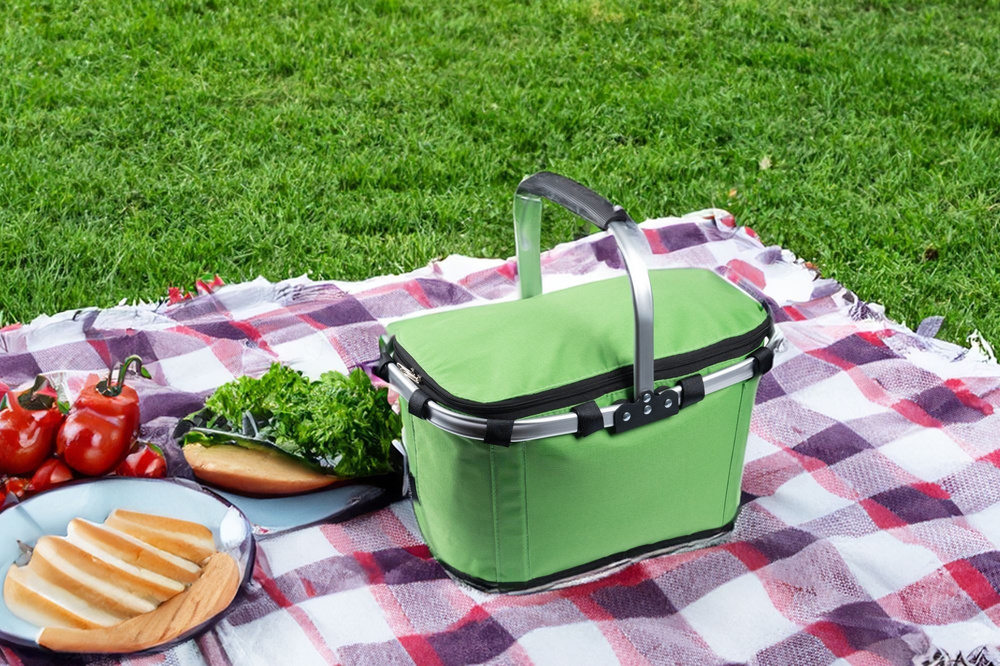 - Kosz piknikowy, lekki i łatwy w przechowywaniu wykonany z izolowanych termicznie materiałów, dzięki którym włożone tam produkty utrzymają odpowiednią temperaturę.