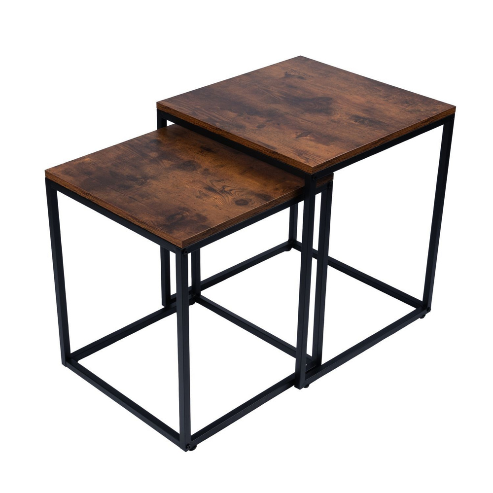Nowoczesne stoliki kawowe kwadratowe zestaw 2w1 loft industrial ława stół stolik dąb antyczny