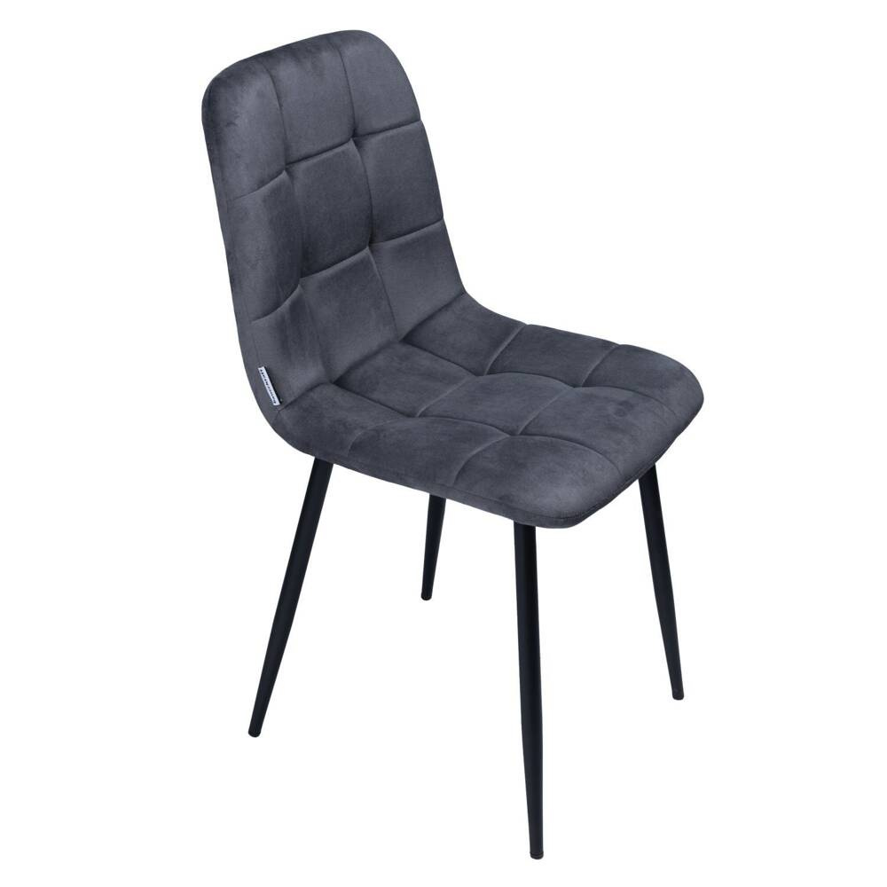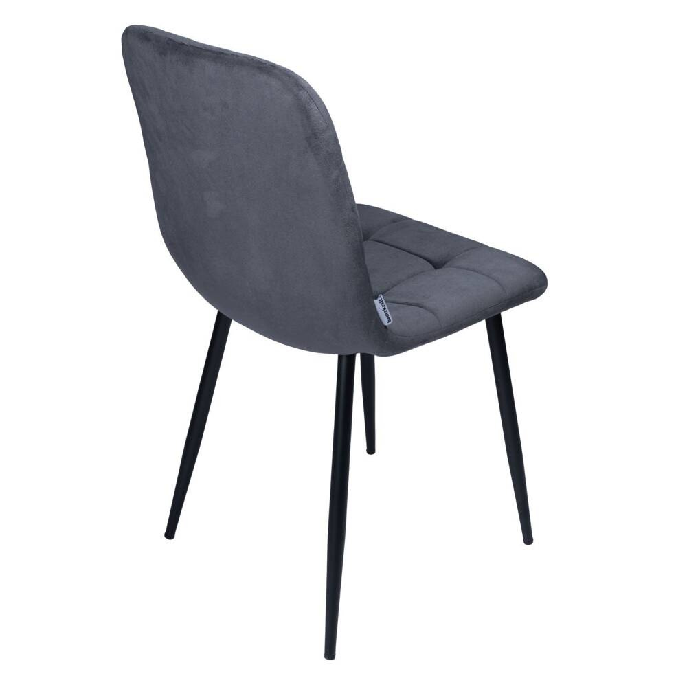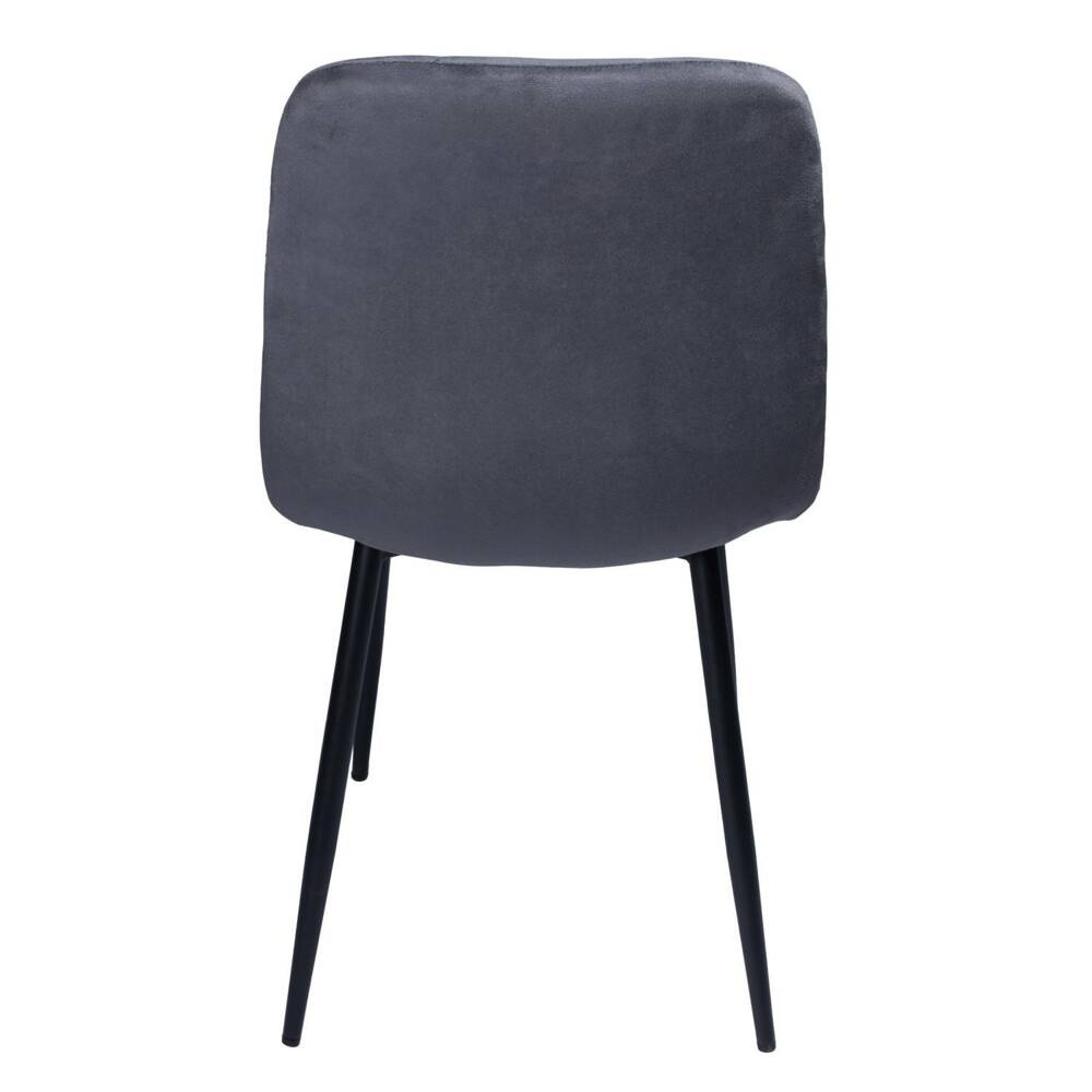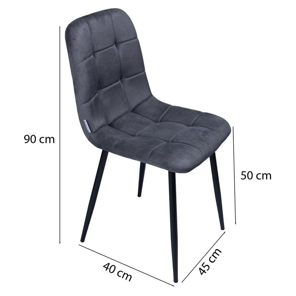 Odcień materiału zmienia się wraz z ułożeniem włosia np. jak w skórze zamszowej. Nogi krzesła wykonane są z metalu w kolorze czarnego matu i zakończone podkładkami, dzięki temu nie będą rysowały podłogi. Połączenie miękkiego welurowego siedziska z metalowymi nogami to wyjątkowa kompozycja, która zachwyca nietuzinkowością i atrakcyjnością.
