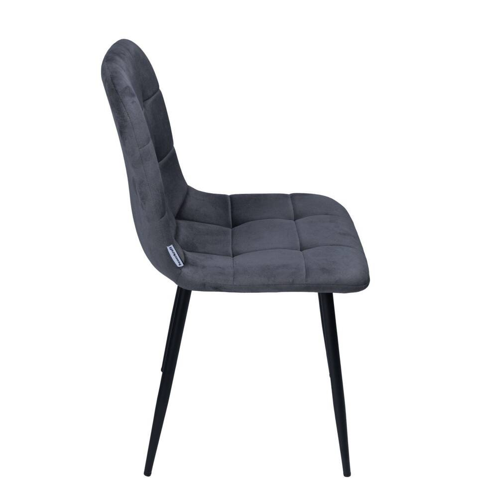 Nowoczesne, tapicerowane krzesło o wyjątkowym designie. Pikowane przeszycia na siedzisku i oparciu tworzą ciekawy wzór kraty, który dodaje krzesłu elegancji i oryginalnego charakteru. Połączenie miękkiego welurowego siedziska i czarnych, metalowych nóg tworzy wyjątkową kompozycję, obok której nie można przejść obojętnie. Wygodne i designerskie krzesło, które spełni oczekiwania nawet najbardziej wymagających klientów. Model świetnie komponuje się w nowocześnie urządzonych wnętrzach.