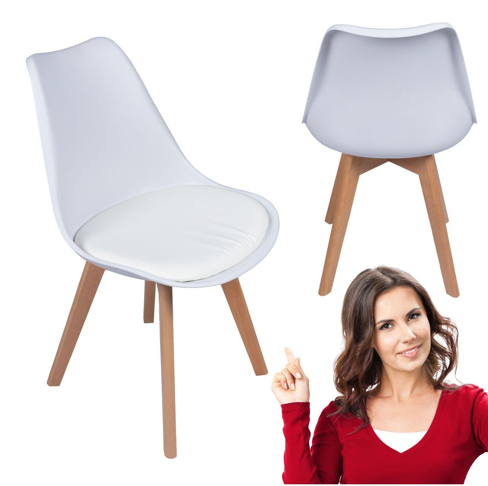Nowoczesne krzesło z poduszką w stylu skandynawskim do salonu jadalni kuchni białe