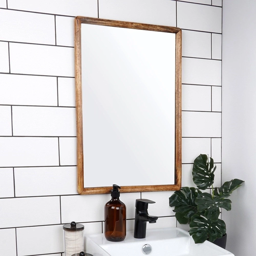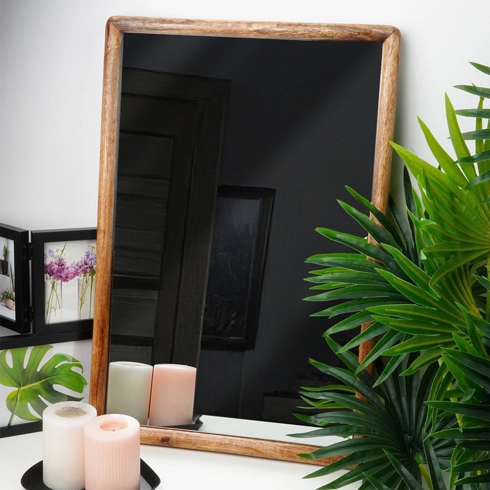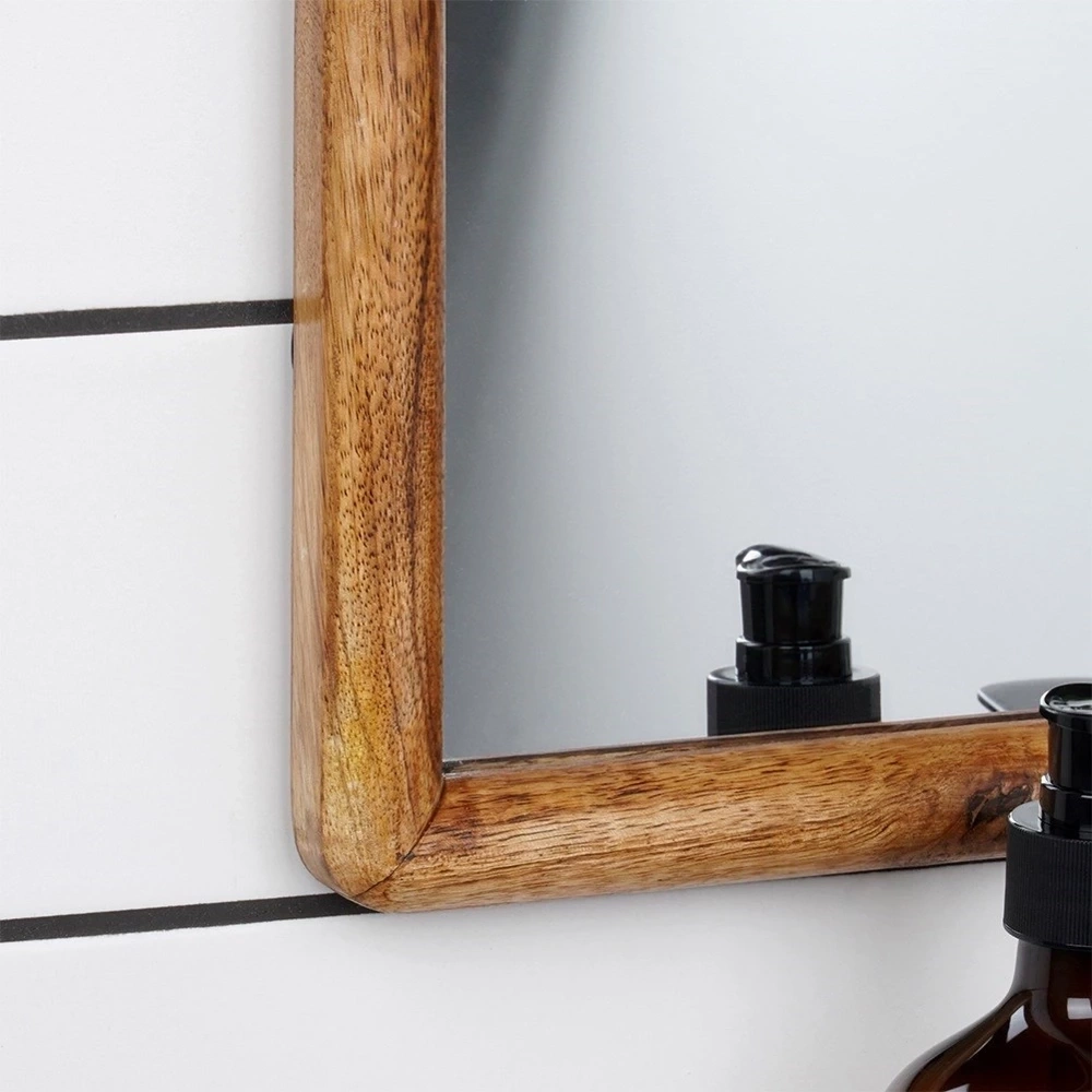 - Rama z drewna mangowca - Rama wykonana z drewna mangowca w naturalnym kolorze. Lustro zapewnia czyste i wyraźne odwzorowanie obrazu.