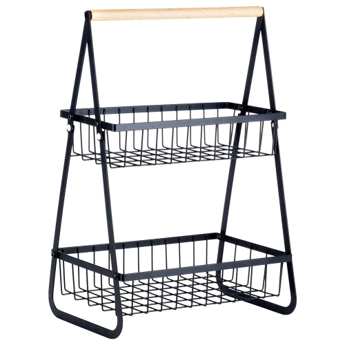 - Dwupoziomowy koszyk na owoce i warzywa w stylu loft. Wykonany z metalu w kolorze czarnym. Znajdzie zastosowanie w każdej kuchni. Posiada drewniany uchwyt.
