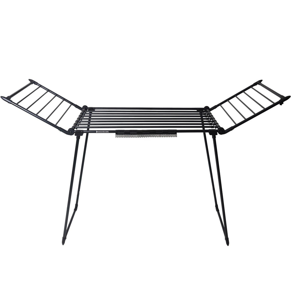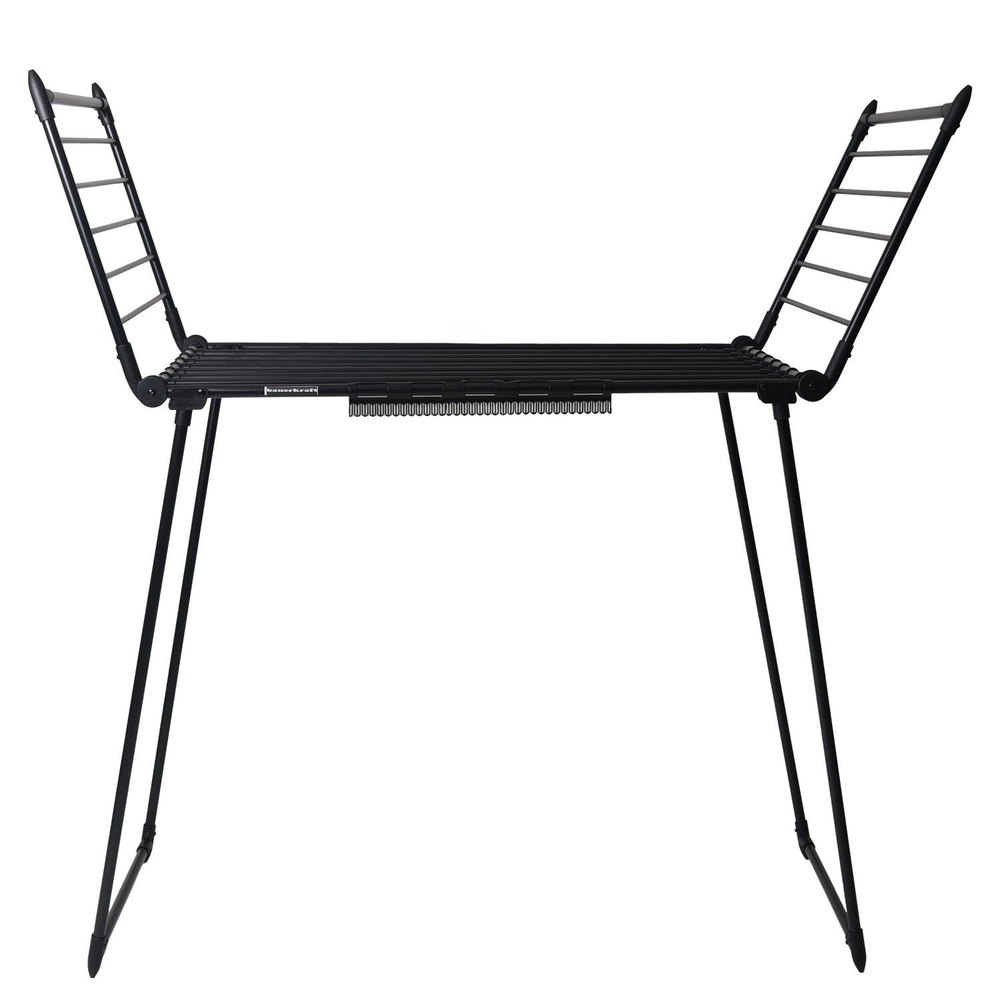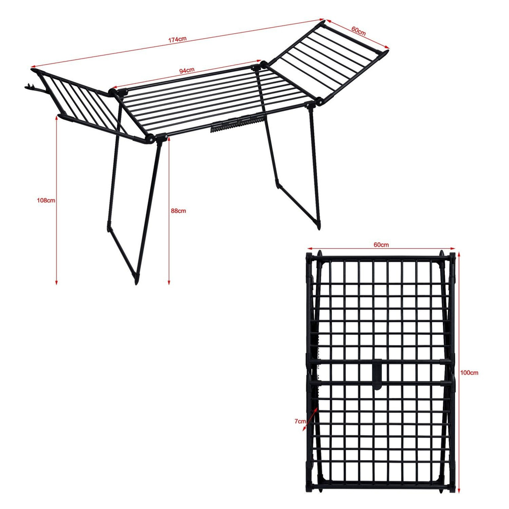 Składana suszarka to doskonały wybór dla każdego gospodarstwa domowego. Wykonana z wysokiej jakości stali węglowej malowanej proszkowo w głębokim czarnym kolorze, gwarantuje długotrwałą wytrzymałość i stabilność. Możliwość rozmieszczenia aż do 19 metrów prania oraz maksymalne obciążenie do 15 kg sprawiają, że jest to produkt niezwykle funkcjonalny i odporny na duże obciążenia. Praktyczne haczyki na bieliznę i skarpetki dodatkowo zwiększają jej użyteczność, czyniąc codzienne prace domowe znacznie łatwiejszymi.