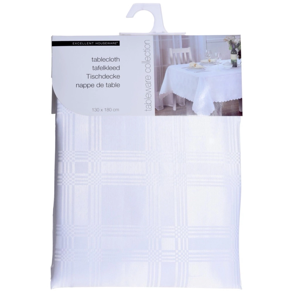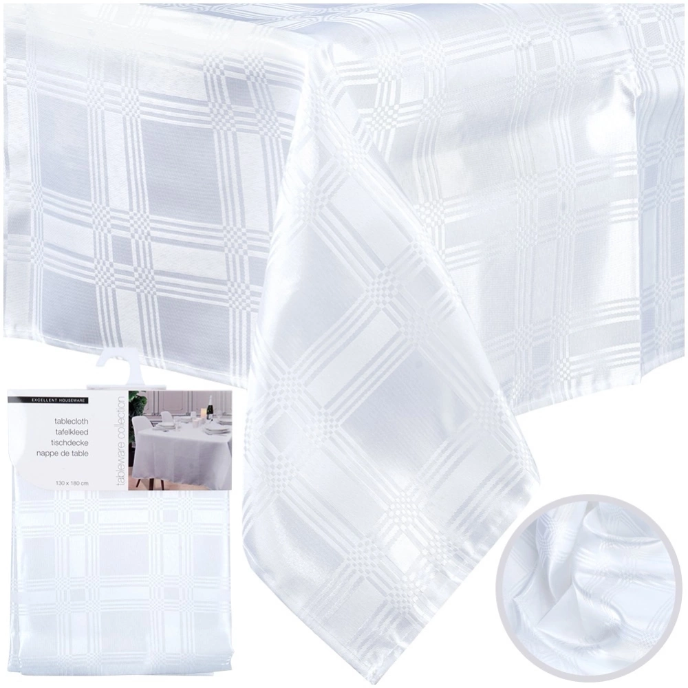 - Obrus o wymiarach 180 x 130 cm - Elegancki obrus w białym kolorze z subtelnym wzorem. Idealnie pasuje do nowoczesnych, jak i klasycznych aranżacji stołu. Obrus ma kształt prostokąta i wymiary 180 x 130 cm.