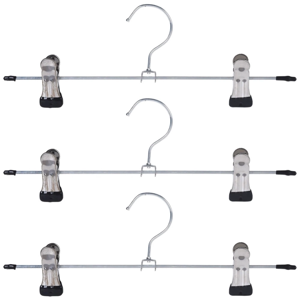 - Zestaw 3 szt. wieszaków z klipsami na spodnie lub spódnice, możliwość dopasowania szerokości za pomocą klipsów. Wykonane z metalu w srebrnym kolorze.