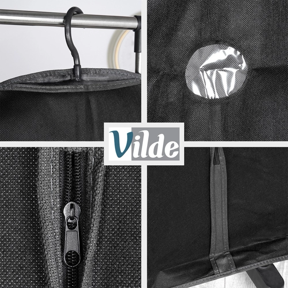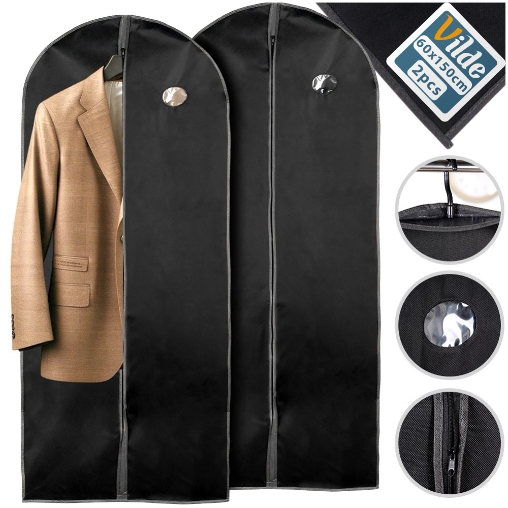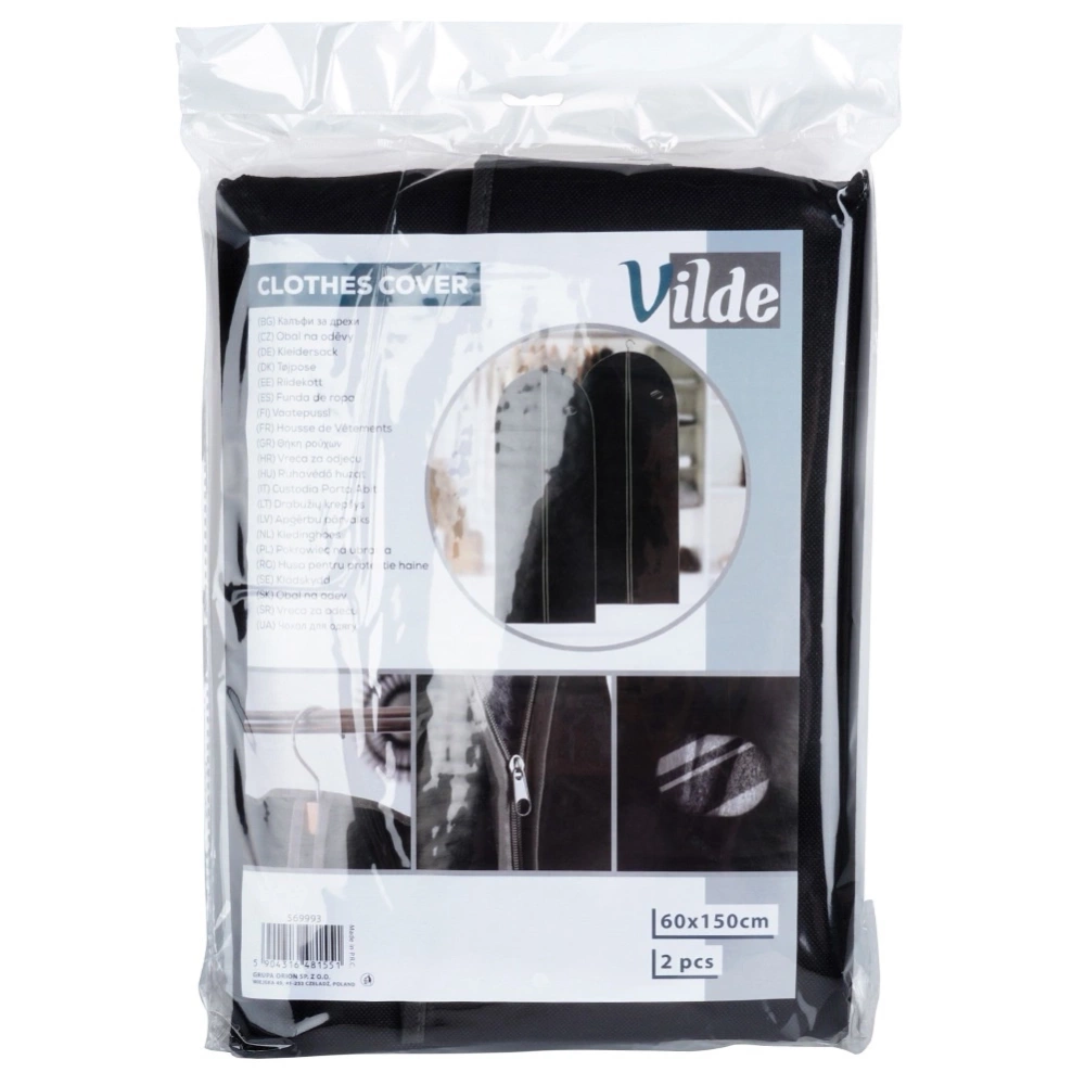 Zestaw dwóch uniwersalnych pokrowców na ubrania. Odpowiednio przechowywane ubrania mogą posłużyć nam przez długi czas. Pokrowce na ubrania, zaprojektowane z myślą o przechowywaniu garniturów, płaszczy, długich sukienek i innych ubrań. Pokrowiec sprawi, że ubranie nie pogniecie się, a jednocześnie zabezpieczy je przed kurzem czy wilgocią. Oryginalny produkt marki Vilde. Wyprodukowano zgodnie z europejskimi standardami.