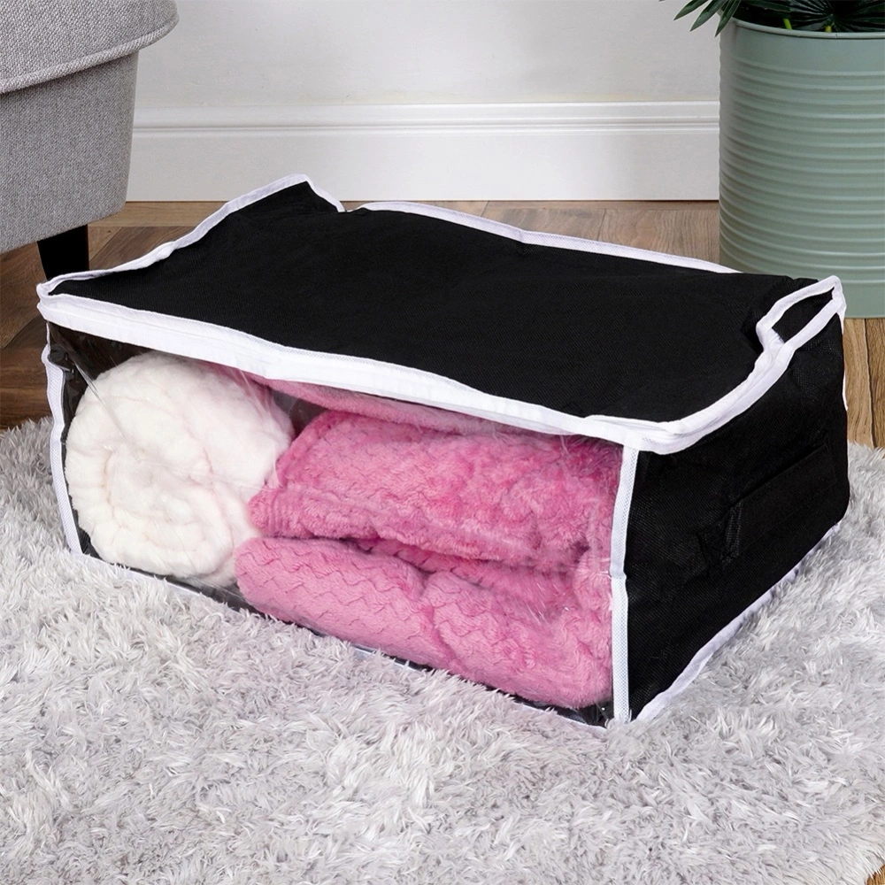 - Praktyczny pokrowiec na pościel, koce, poduszki oraz ubrania. Chroni pościel przed zawilgoceniem, kurzem i molami. Zapewni wygodne przechowywanie rzeczy w szafie lub pod łóżkiem.