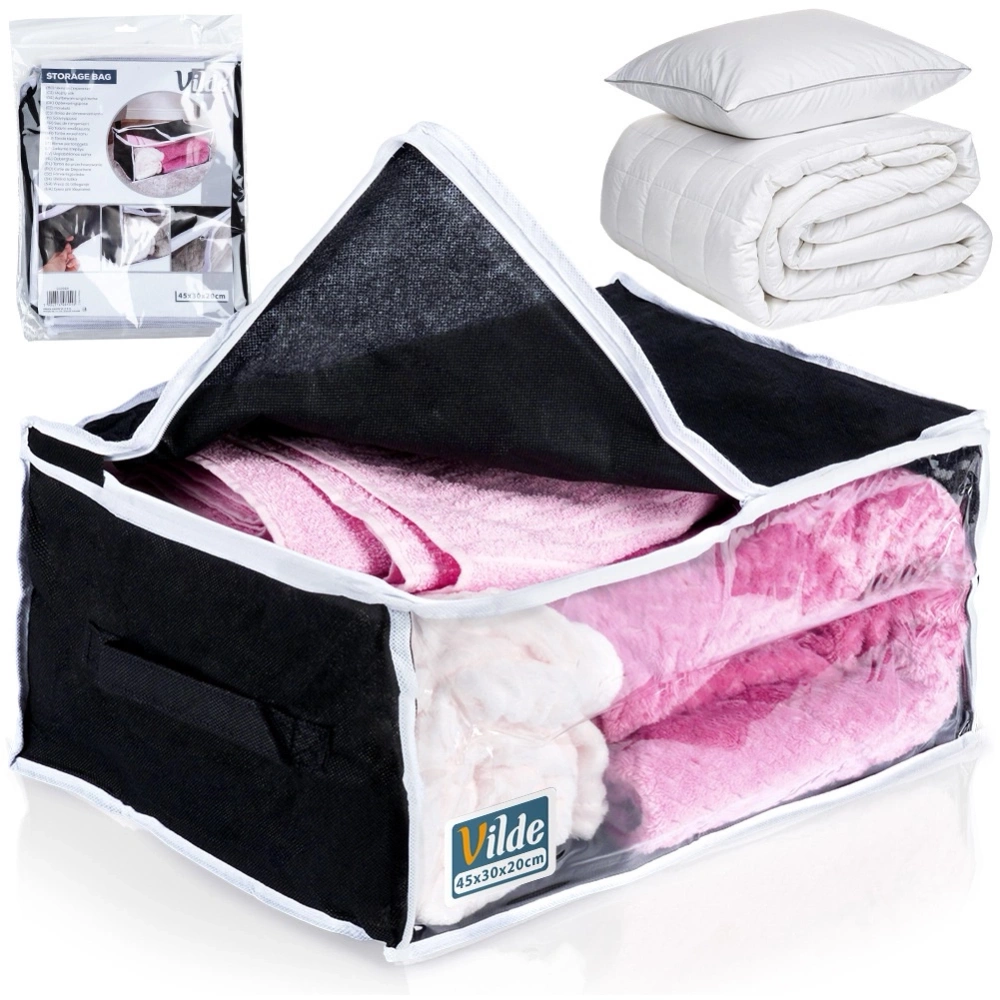 - Praktyczny pokrowiec na pościel - Praktyczny pokrowiec na pościel, koce, poduszki oraz ubrania. Chroni pościel przed zawilgoceniem, kurzem, molami i innymi czynnikami zewnętrznymi. Pokrowiec zapewni wygodne przechowywanie rzeczy w szafie lub pod łóżkiem. Pokrowiec ma wymiary 45 x 30 x 20 cm i pojemność 27 l.