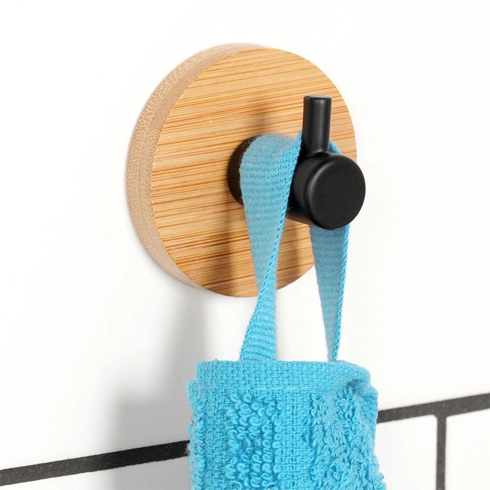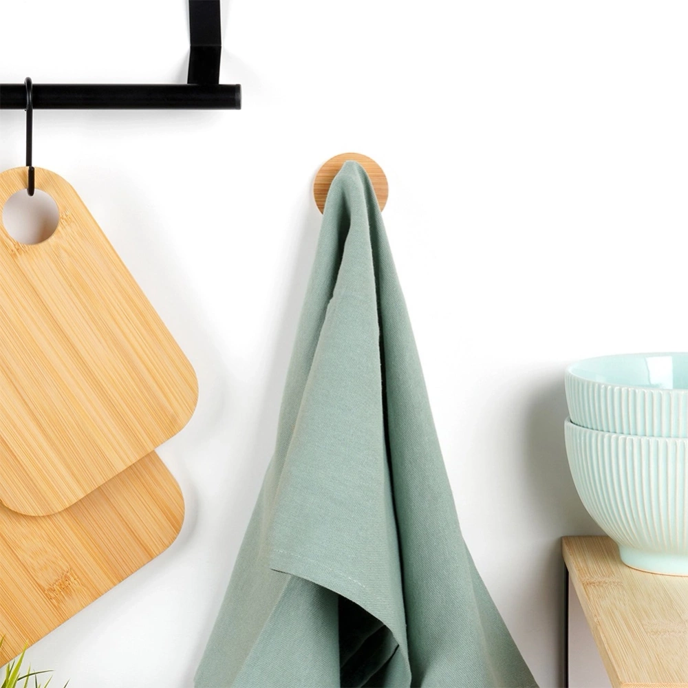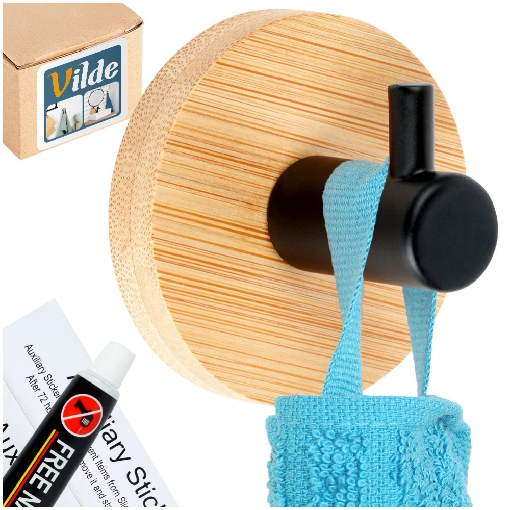 - Haczyk montowany za pomocą kleju. Doskonale sprawdzi się do wieszania ręczników lub ścierek w kuchni oraz łazience. Wykonany z drewna bambusowego oraz metalu.