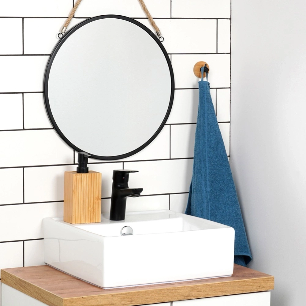 - Nowoczesny design - Okrągła podstawa z bambusa w połączeniu z czarnym, metalowym haczykiem tworzy elegancki i nowoczesny wygląd. Pasuje do każdego wnętrza, dodając elegancji.