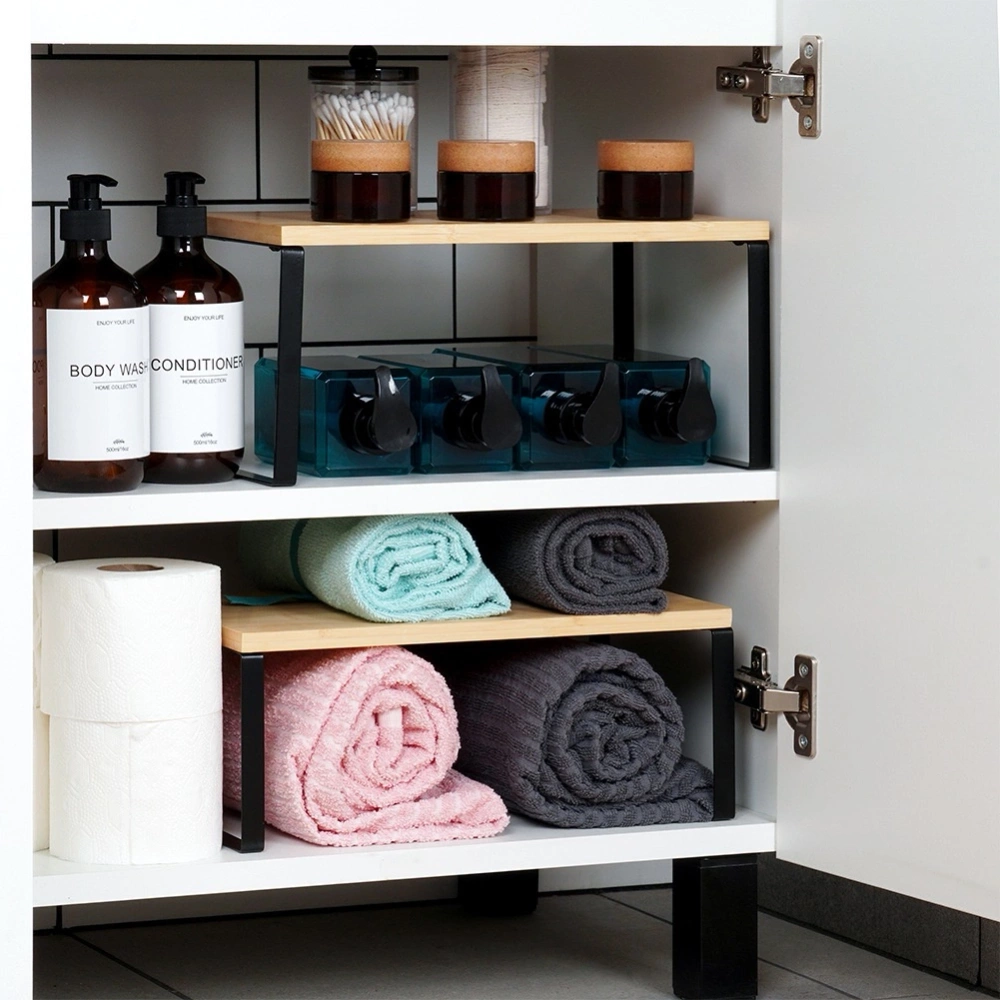 - Wykonane z drewna bambusowego - Wykonane z najwyższej drewna bambusowego i usadowione na metalowej konstrukcji w kolorze czarnym. Półki są wytrzymałe i stabilne.