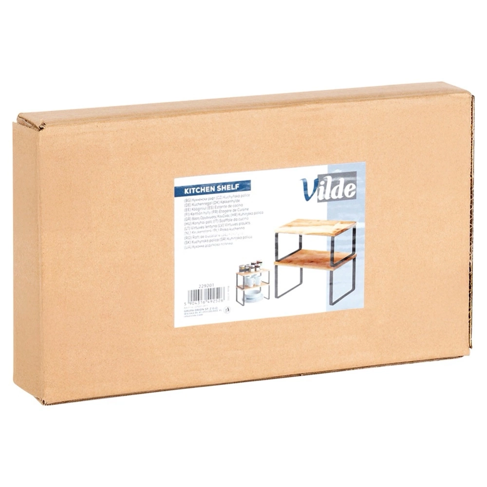Zestaw dwóch półek idealnych do uporządkowania przestrzeni w kuchni. Półki możemy użytkować w dowolnej kombinacji, dzięki czemu zyskamy dodatkową przestrzeń do przechowywania akcesoriów kuchennych. Półki są niezwykle uniwersalne. Idealne rozwiązanie dla tych, którzy chcą efektywnie wykorzystać dostępną przestrzeń na blacie. Oryginalny produkt marki Vilde. Wyprodukowano zgodnie z europejskimi standardami.