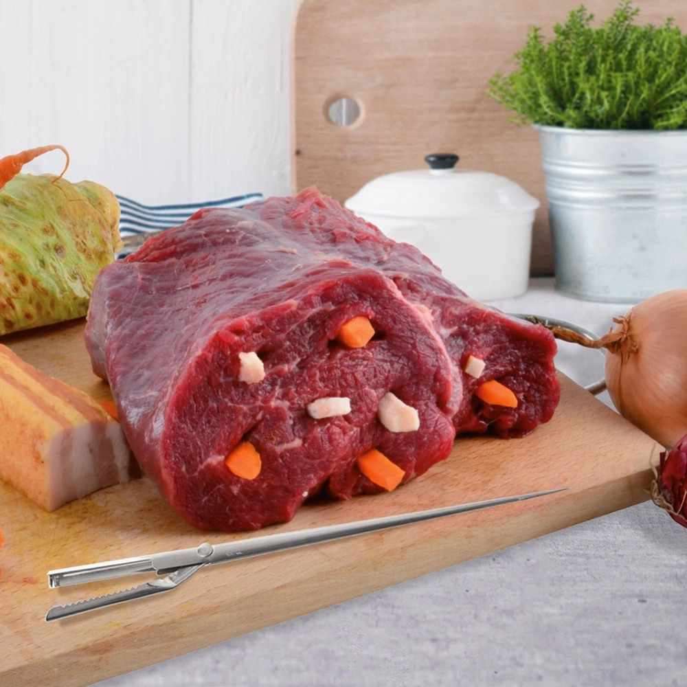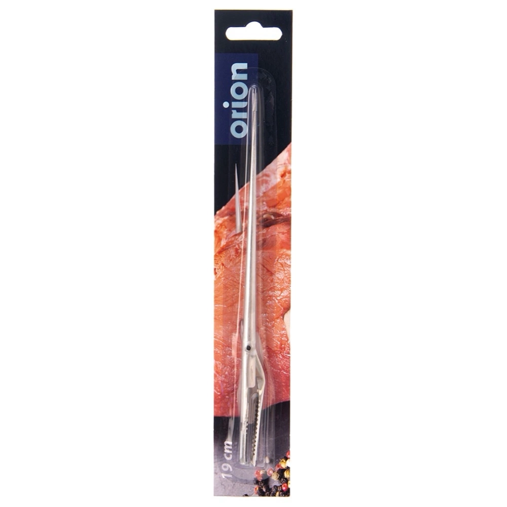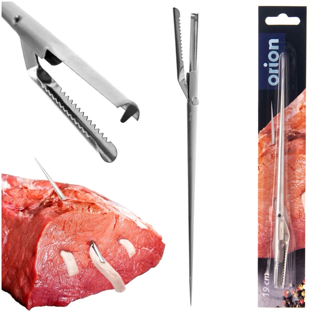 - Igła do szpikowania mięsa 19 cm - Praktyczny szpikulec do nadziewania mięsa słoniną, boczkiem lub warzywami przed pieczeniem. Ułatwia równomierne rozprowadzenie składników, poprawiając smak i soczystość potraw. Długość szpikulca to 19 cm.