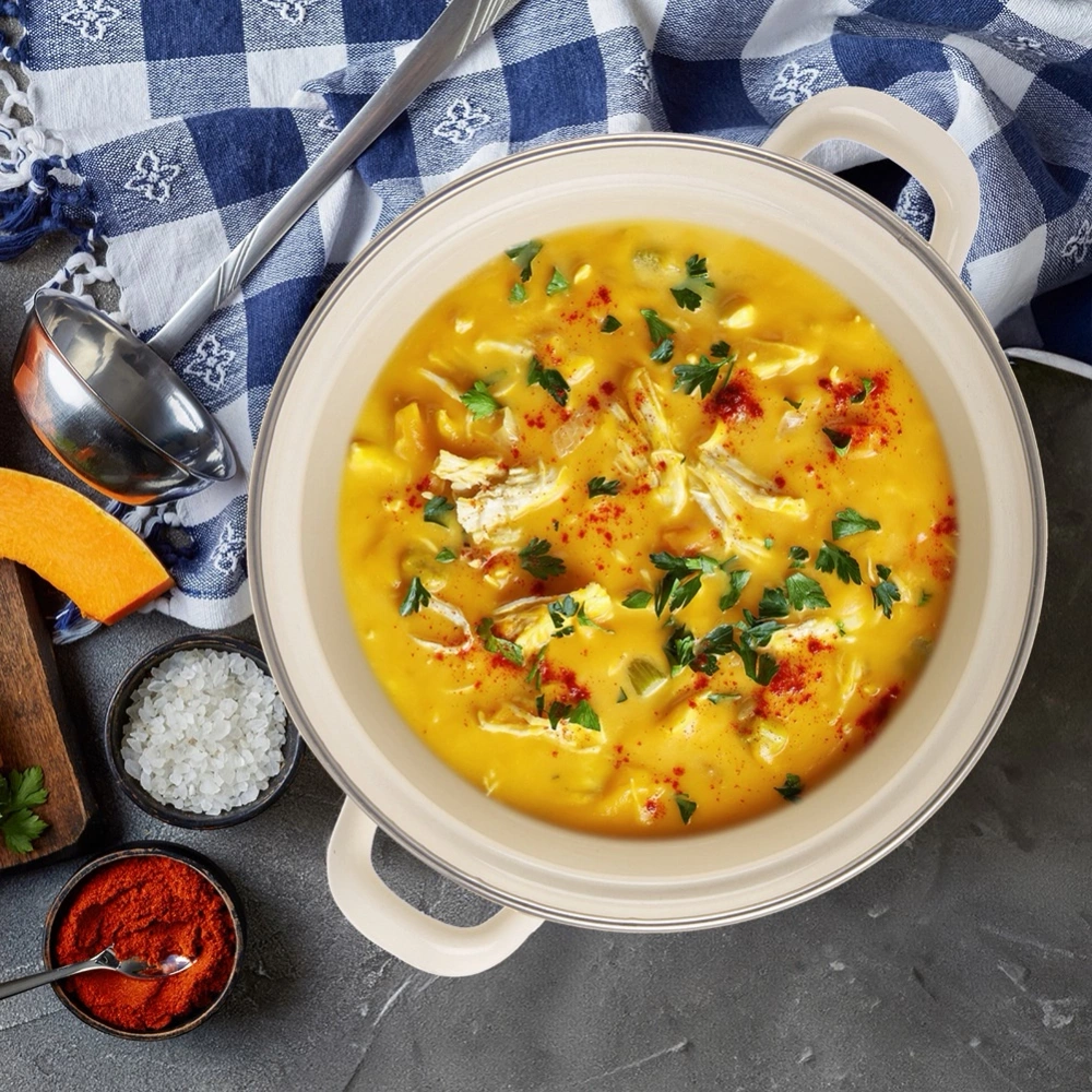 - Tradycyjny garnek wykonany ze stali emaliowanej. Przydatny do gotowania, duszenia czy przygotowywania różnych dań. Nadaje się na wszystkie rodzaje kuchenek wraz z indukcją.