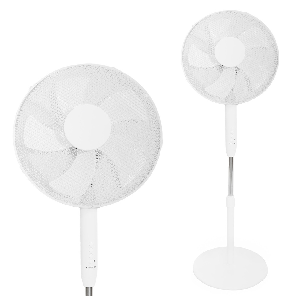 Wentylator podłogowy wiatrak stojący 5 łopatek mocny cichy 3 tryby regulacja 45W biały Bauerkraft