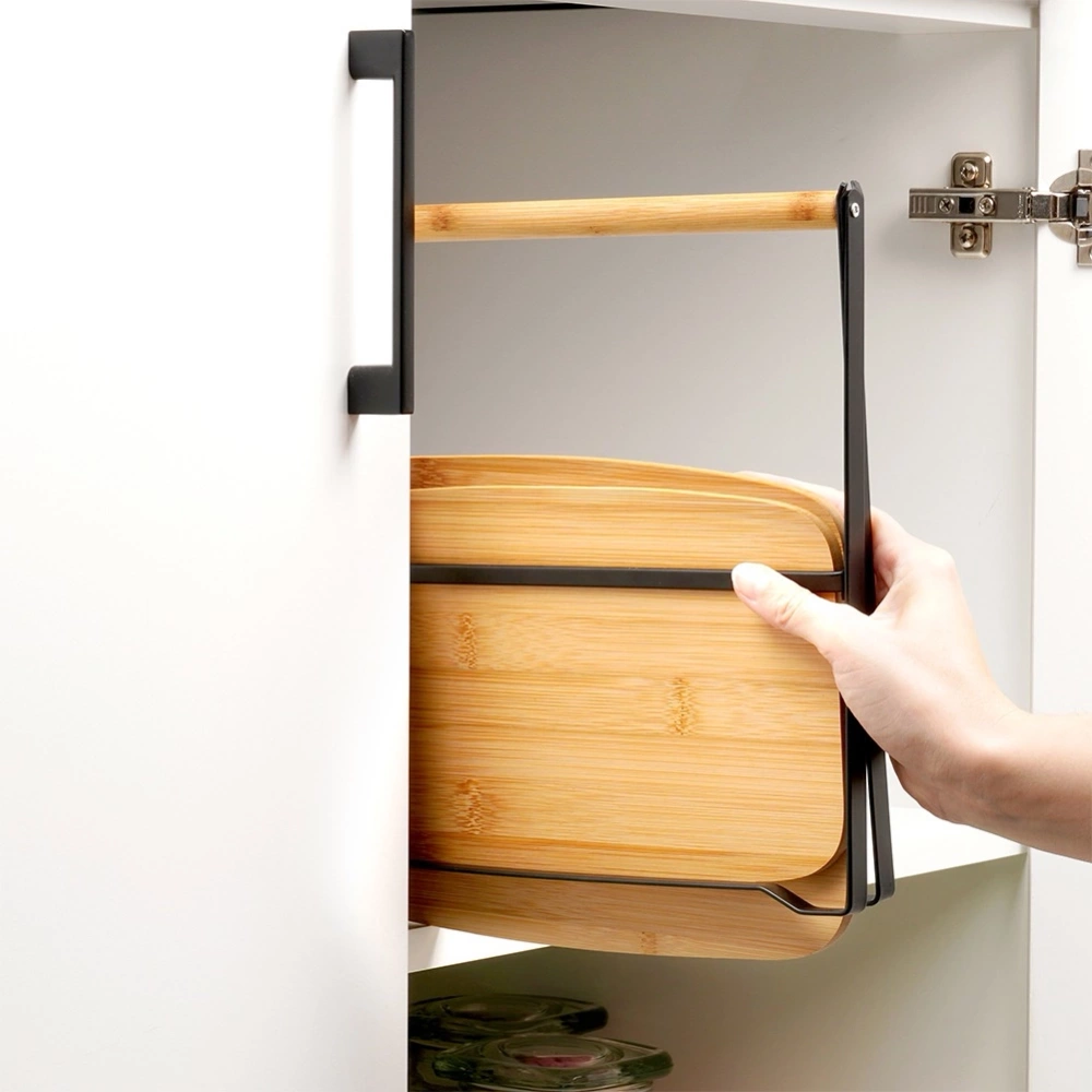 - Solidna i stabilna konstrukcja - Konstrukcja została wykonana z metalu w czarnym kolorze. Patery zostały wykonane z drewna bambusowego.