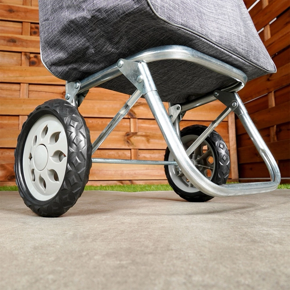- Duża ładowność - Wózek został zaprojektowany z myślą o codziennym użytkowaniu, dlatego jego konstrukcja umożliwia przewożenie ładunku o wadze nawet do 20 kg. Stabilna metalowa rama i wytrzymała torba zapewniają bezpieczeństwo i komfort podczas transportu zakupów.