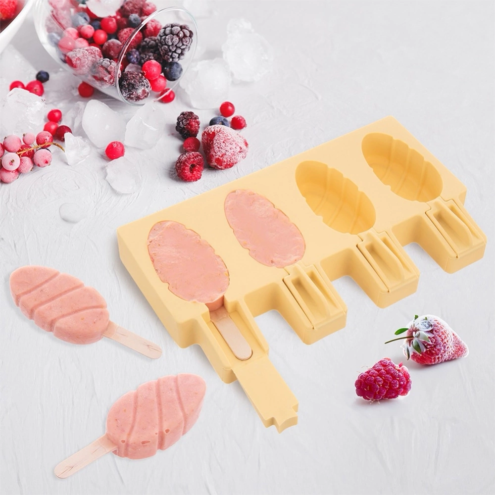 - Wykonana z silikonu - Foremka wykonana z najwyższej jakości silikonu w pastelowym, żółtym kolorze. Pokrywka w przezroczystym kolorze. W zestawie 24 szt. drewnianych patyczków do lodów.