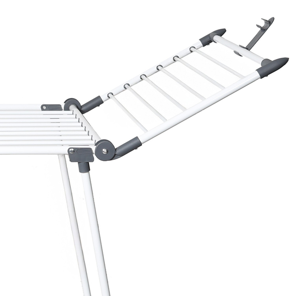Składana suszarka to doskonały wybór dla każdego gospodarstwa domowego. Wykonana z wysokiej jakości stali węglowej malowanej proszkowo w białym kolorze, gwarantuje długotrwałą wytrzymałość i stabilność. Możliwość rozmieszczenia aż do 19 metrów prania oraz maksymalne obciążenie do 15 kg sprawiają, że jest to produkt niezwykle funkcjonalny i odporny na duże obciążenia. Praktyczne haczyki na bieliznę i skarpetki dodatkowo zwiększają jej użyteczność, czyniąc codzienne prace domowe znacznie łatwiejszymi.