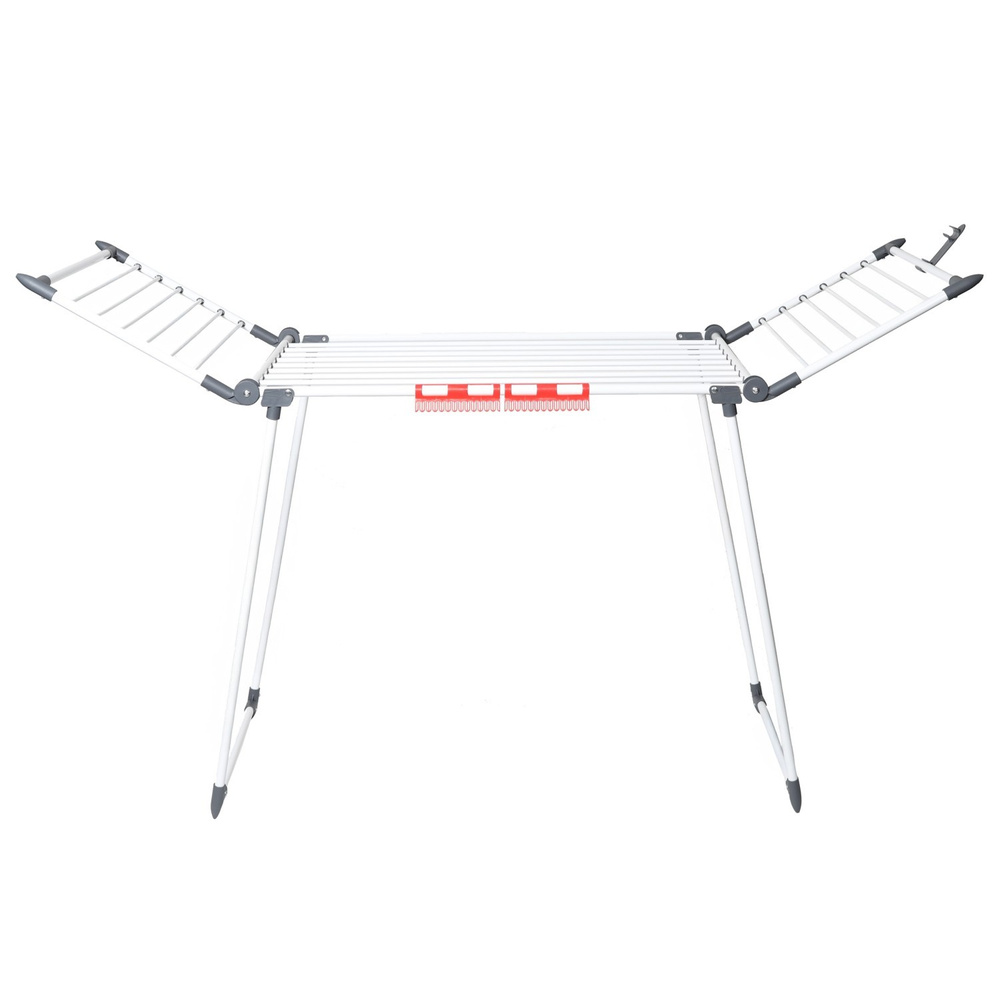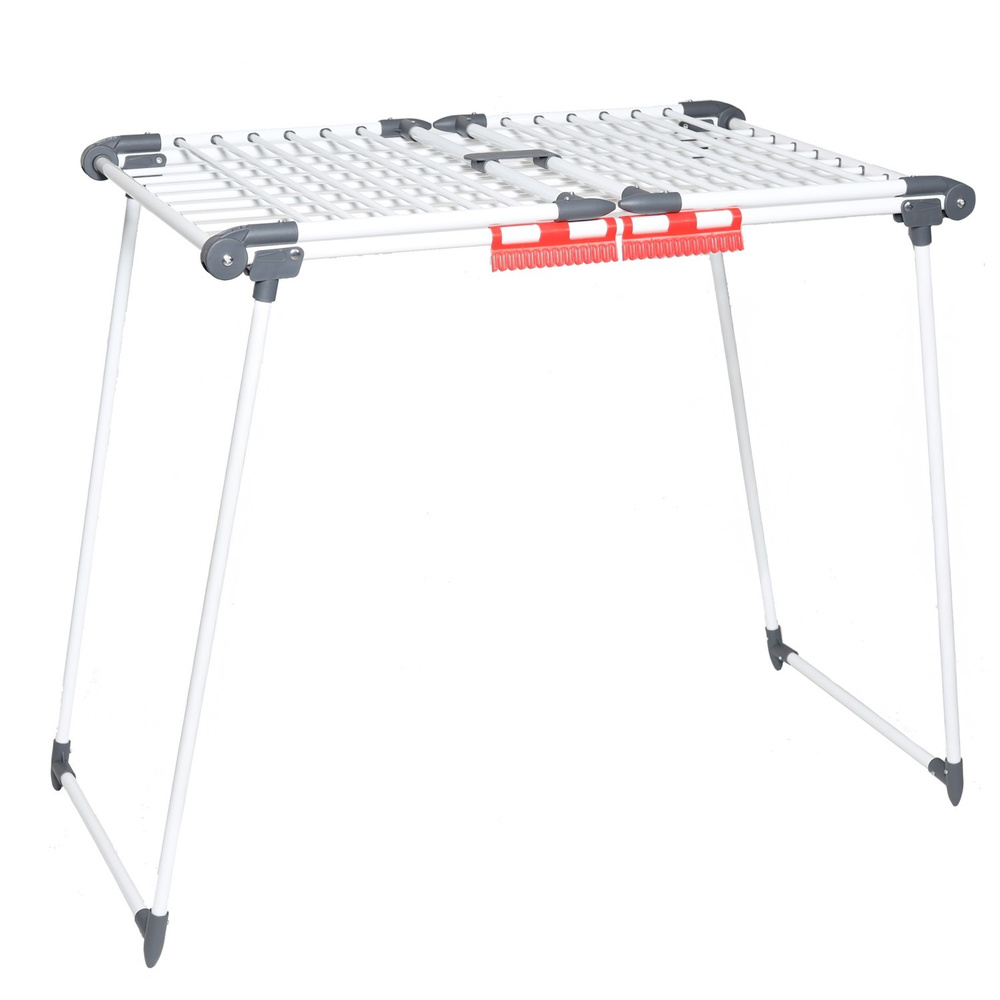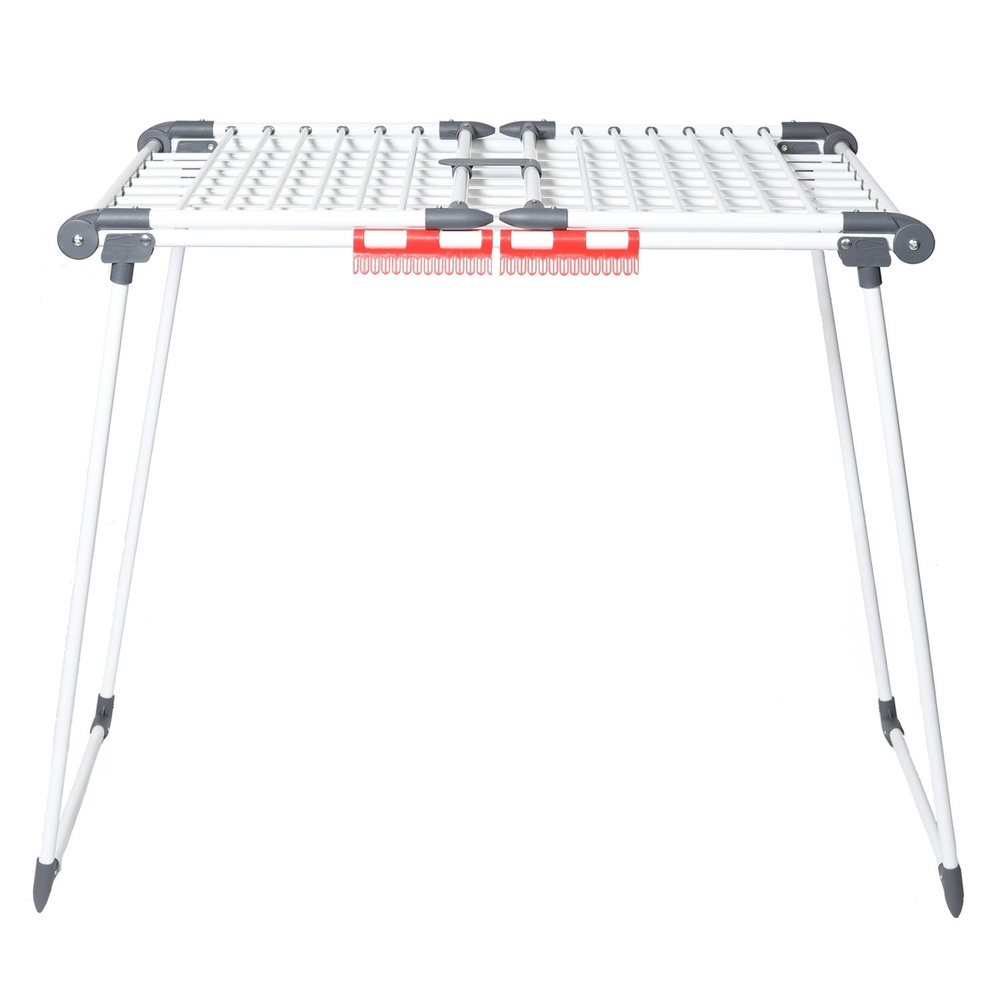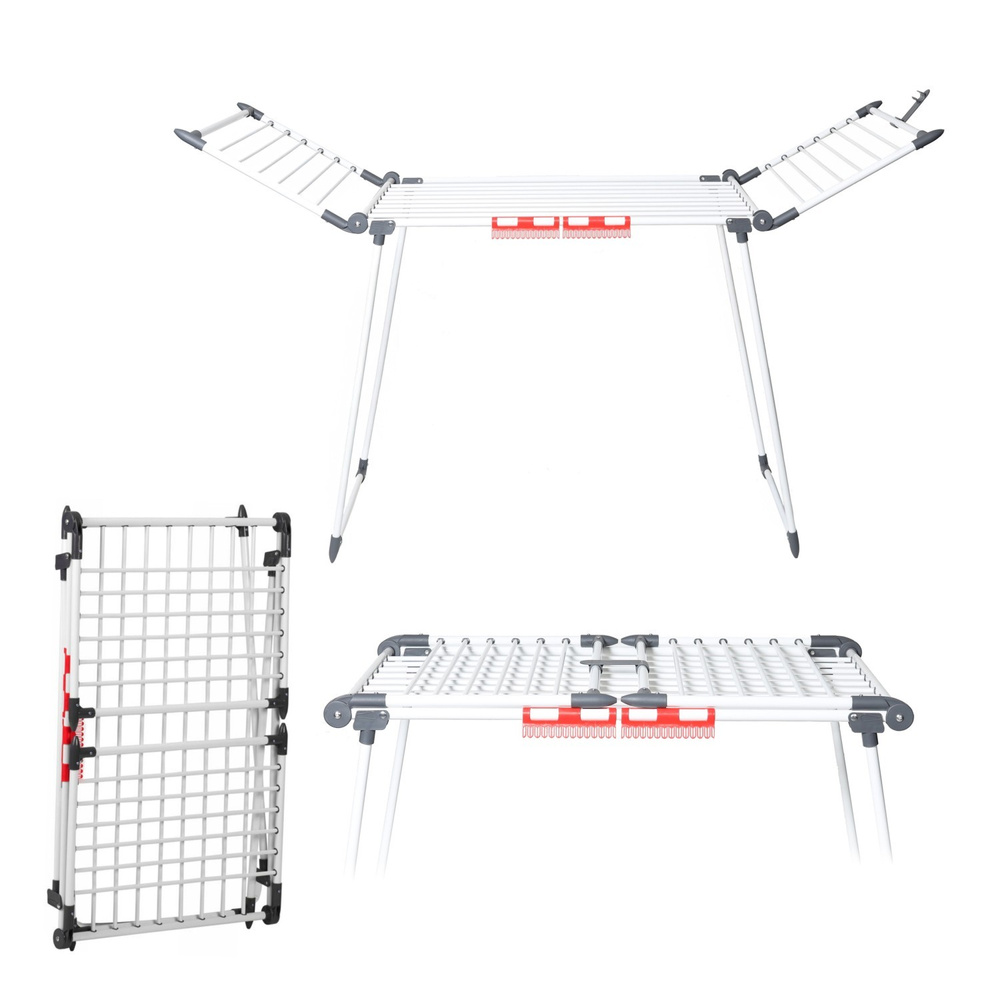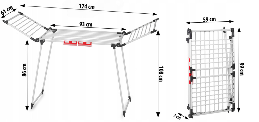 Suszarka wyróżnia się łatwością składania, co pozwala na szybkie i bezproblemowe przechowywanie w dowolnym miejscu. Po złożeniu zajmuje bardzo mało miejsca, dzięki czemu idealnie nadaje się do przechowywania w małych mieszkaniach czy ciasnych przestrzeniach.