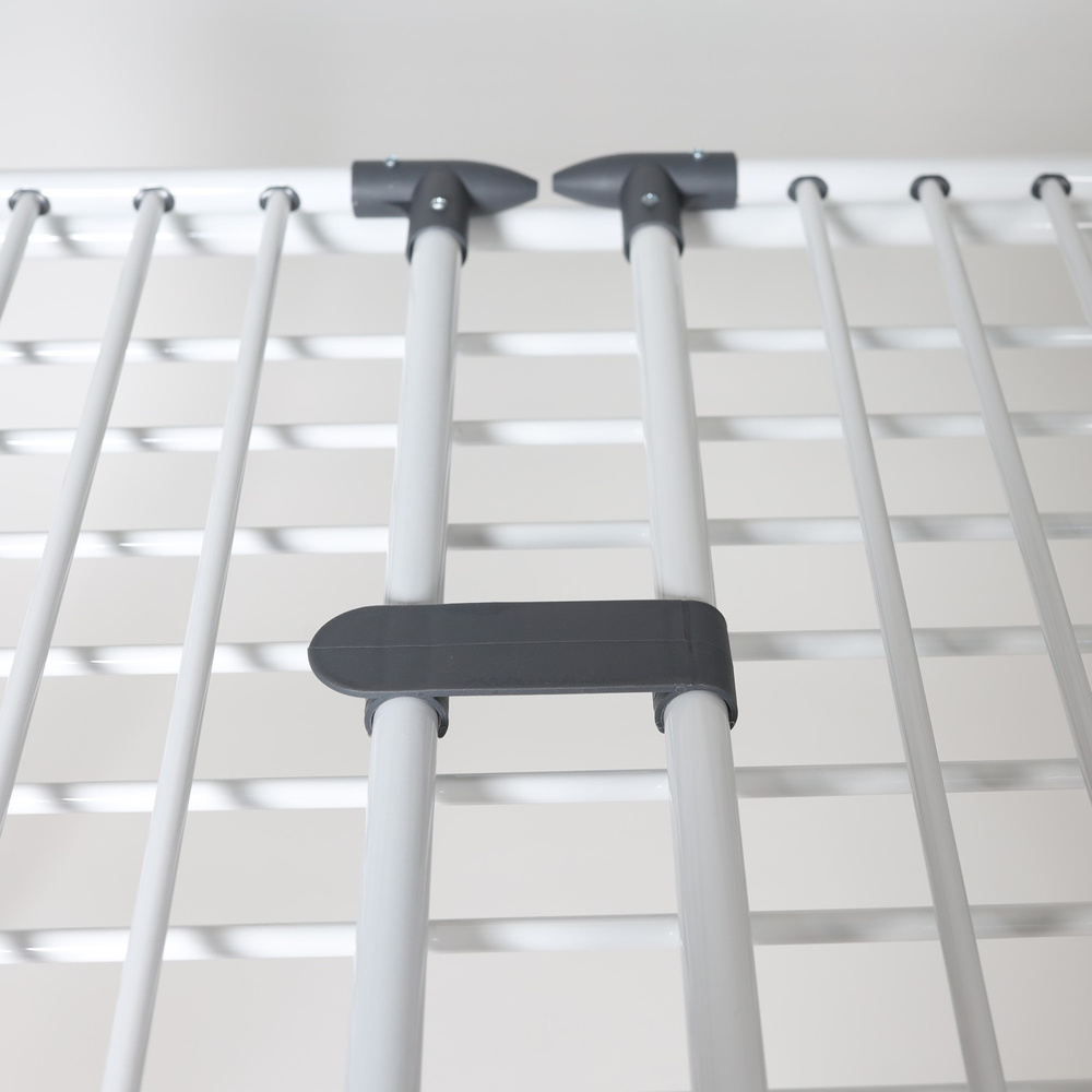✅Wytrzymała konstrukcja: stal malowana proszkowo zapewnia solidność i odporność na uszkodzenia. Biały kolor łatwo komponuje się z wnętrzem.