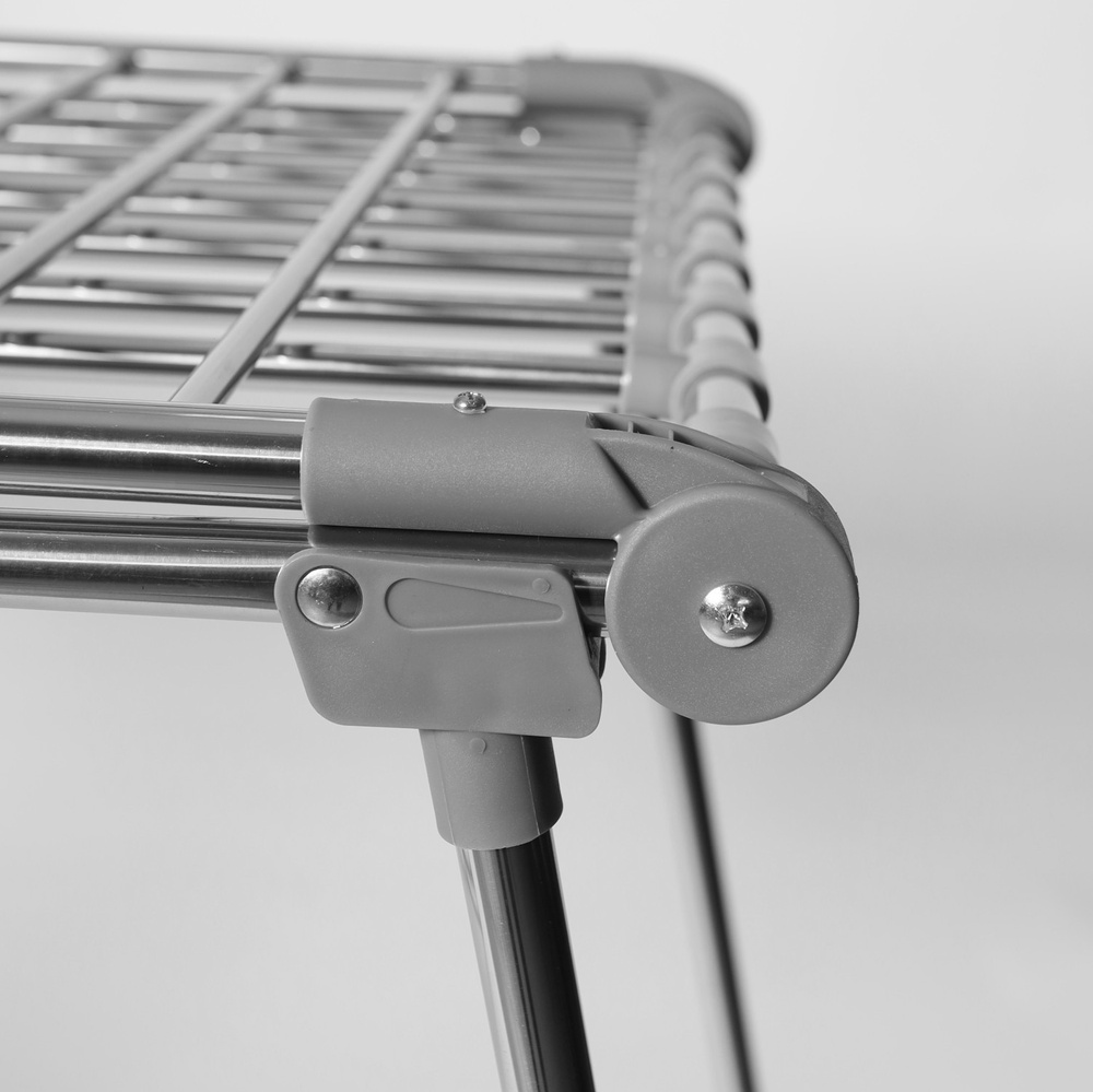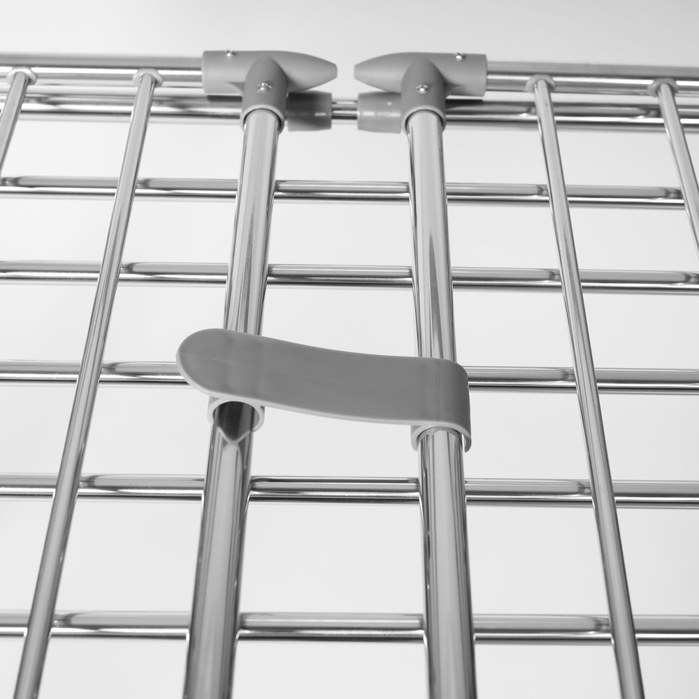Suszarka wyróżnia się łatwością składania, co pozwala na szybkie i bezproblemowe przechowywanie w dowolnym miejscu. Po złożeniu zajmuje bardzo mało miejsca, dzięki czemu idealnie nadaje się do przechowywania w małych mieszkaniach czy ciasnych przestrzeniach.