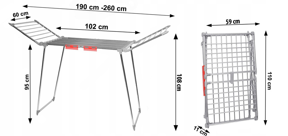 ✅Maksymalne obciążenie: suszarka jest zaprojektowana do przenoszenia obciążenia do 20 kg, co jest idealne dla dużej rodziny lub w przypadku suszenia ciężkich tkanin.