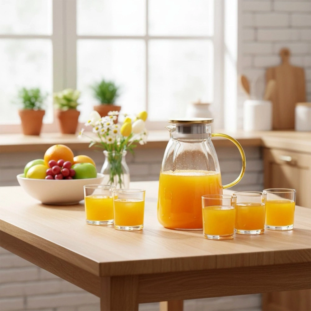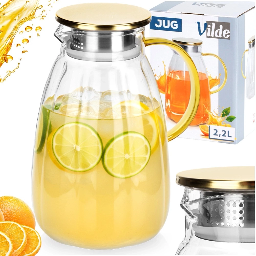Szklany dzbanek do napojów. Wygodny w użytkowaniu i łatwy w czyszczeniu. Dzięki wyprofilowanemu dzióbkowi, nalewanie jest wyjątkowo proste. Dzbanek świetnie sprawdzi się do serwowania różnych napojów. Możemy przechowywać w nim napoje w lodówce. Posiada klasyczny kształt, dzięki czemu idealnie pasuje do każdej zastawy. Oryginalny produkt marki Vilde. Wyprodukowano zgodnie z europejskimi standardami.