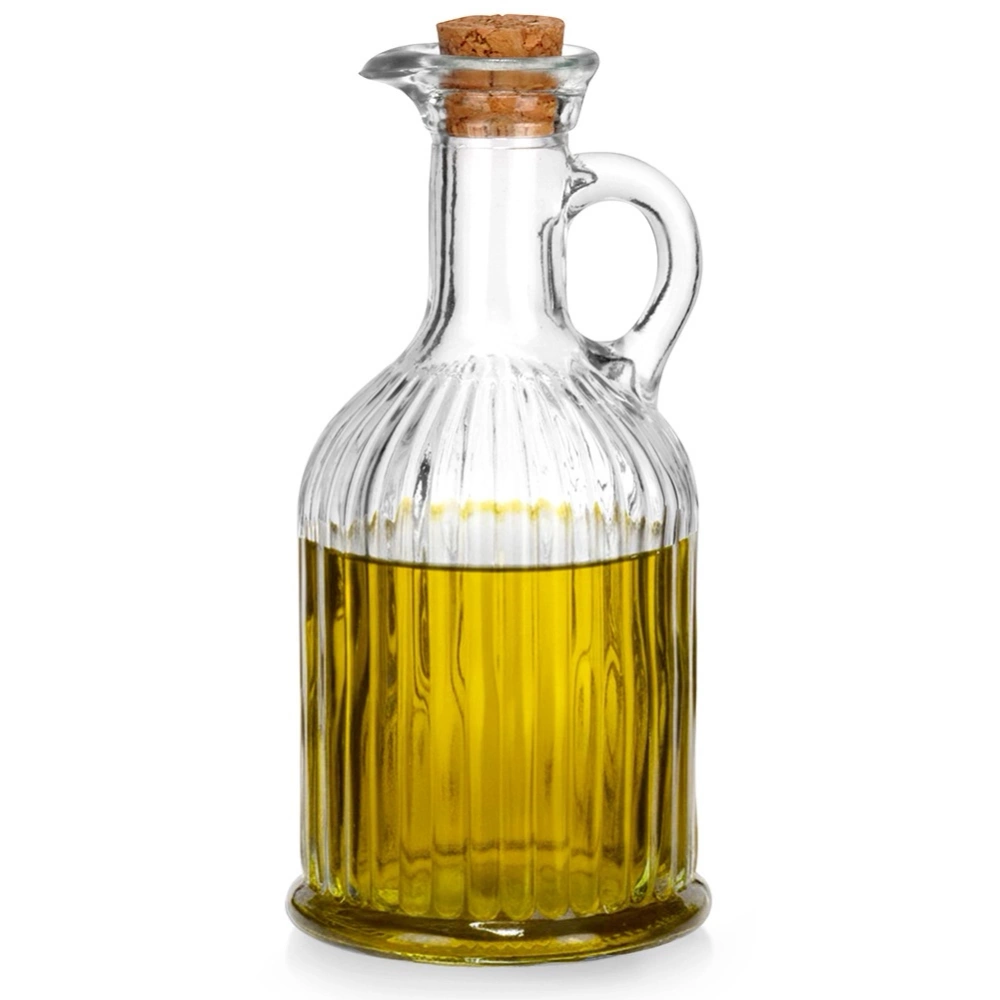 - Wygodne korzystanie - Butelka posiada praktyczny uchwyt, który ułatwia pewne trzymanie i nalewanie oliwy lub octu. Naturalny korek chroni zawartość przed zanieczyszczeniami i nadaje całości efektowny wygląd.