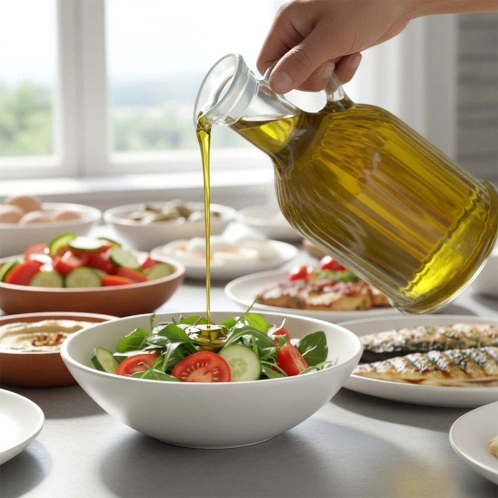 - Dekoracyjna i praktyczna - Butelka pozwala na efektowne wyeksponowanie oliwy lub octu. Idealna na oliwy smakowe. Oliwa z dodatkami – czosnkiem, ziołami, chilli – będzie dekoracyjnie prezentować się w butelce.
