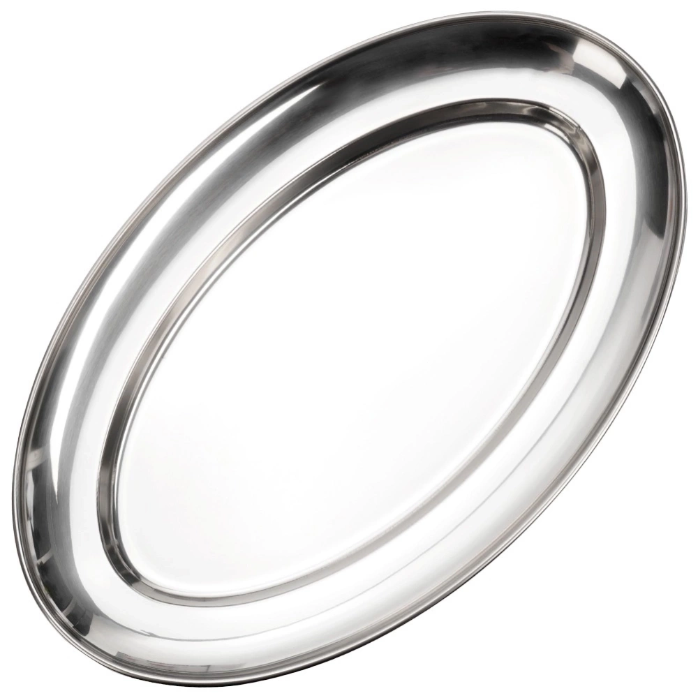 - Półmisek do serwowania przekąsek, ciast, deserów, a także przystawek czy dań. Półmisek ma wymiary 32 x 20 cm. Wykonany ze stali nierdzewnej.
