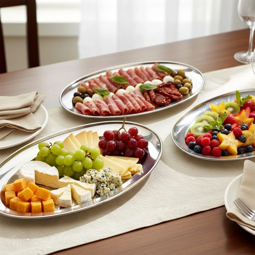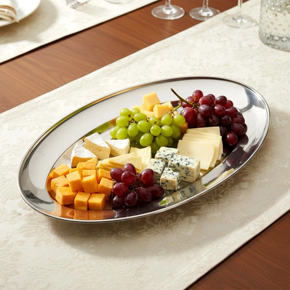 Owalny półmisek ze stali nierdzewnej nadaje się do podawania różnego rodzaju potraw, od mięs i serów po owoce i ciasta. Można go wykorzystać zarówno podczas codziennych posiłków, jak i eleganckich przyjęć. Oryginalny produkt marki Vilde. Wyprodukowano zgodnie z europejskimi standardami.