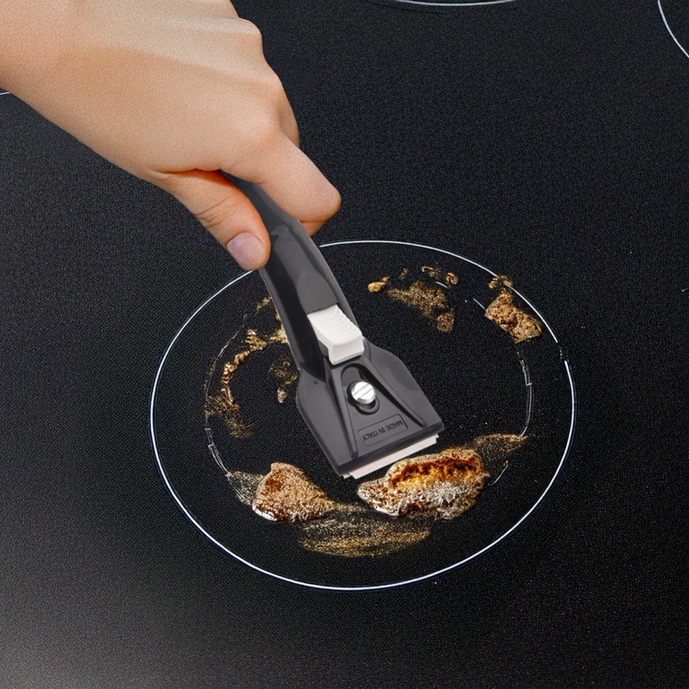 - Uniwersalny skrobak wykonany z ostrym ostrzem. Idealny do płyt ceramicznych i indukcyjnych. Skutecznie usunie zaschnięte plamy oraz pozostałości naklejek ze szklanych powierzchni.