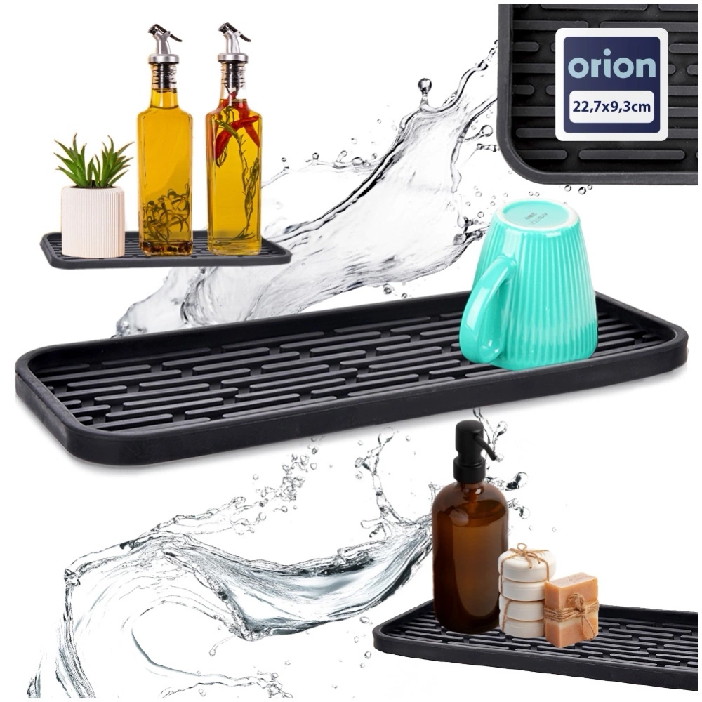 Mata na zlew, wykonana z elastycznego materiału, jest odporna na ślady użytkowania i łatwa w czyszczeniu. Jej uniwersalny rozmiar sprawia, że zabezpiecza blat wokół dowolnego zlewu. Przydatna zarówno w kuchni jak i łazience. Oryginalny produkt czeskiej marki Orion. Wyprodukowano zgodnie z europejskimi standardami.
