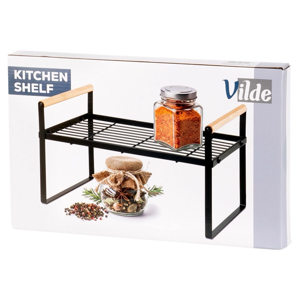 Praktyczna półka idealna do uporządkowania przestrzeni w kuchni. Półka dzieli blat lub szafkę na dwie części, dzięki czemu zyskamy dodatkową przestrzeń do przechowywania akcesoriów kuchennych. Półka jest niezwykle uniwersalna. Idealne rozwiązanie dla tych, którzy chcą efektywnie wykorzystać dostępną przestrzeń w szafkach lub na blacie. Oryginalny produkt marki Vilde. Wyprodukowano zgodnie z europejskimi standardami.