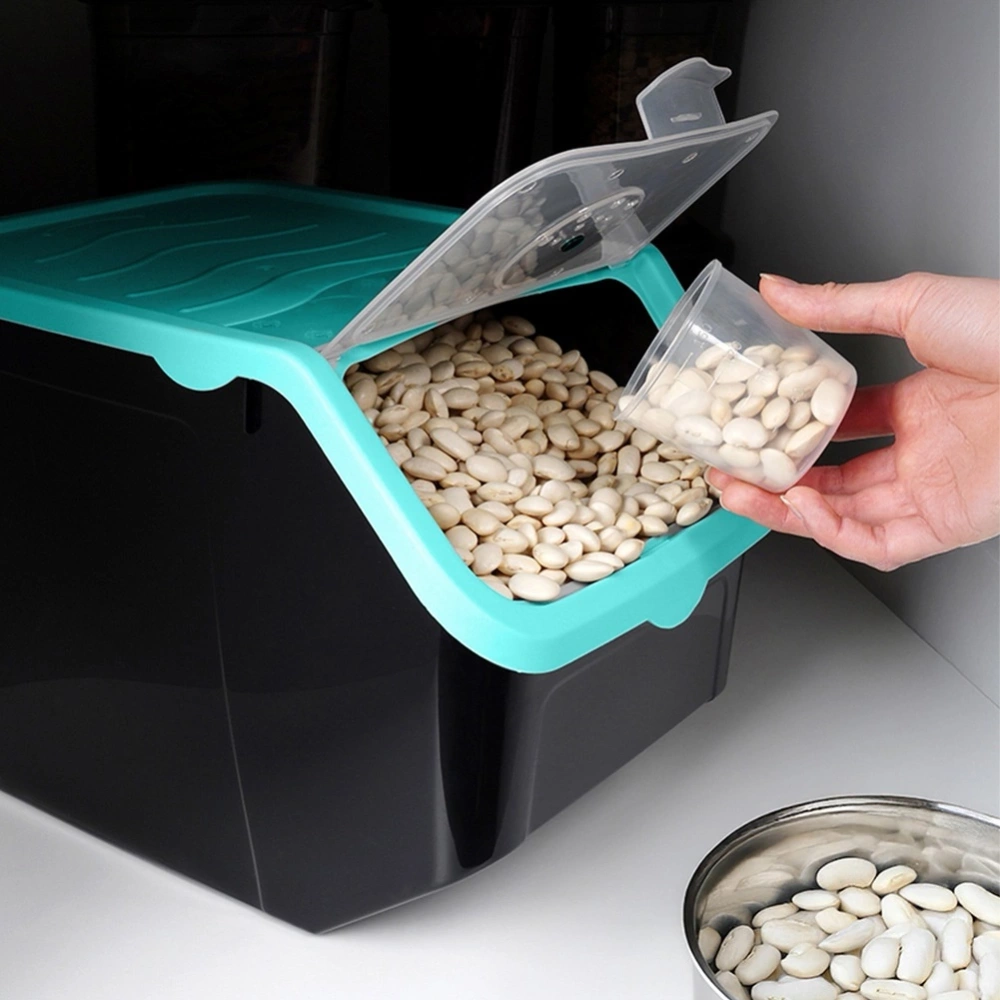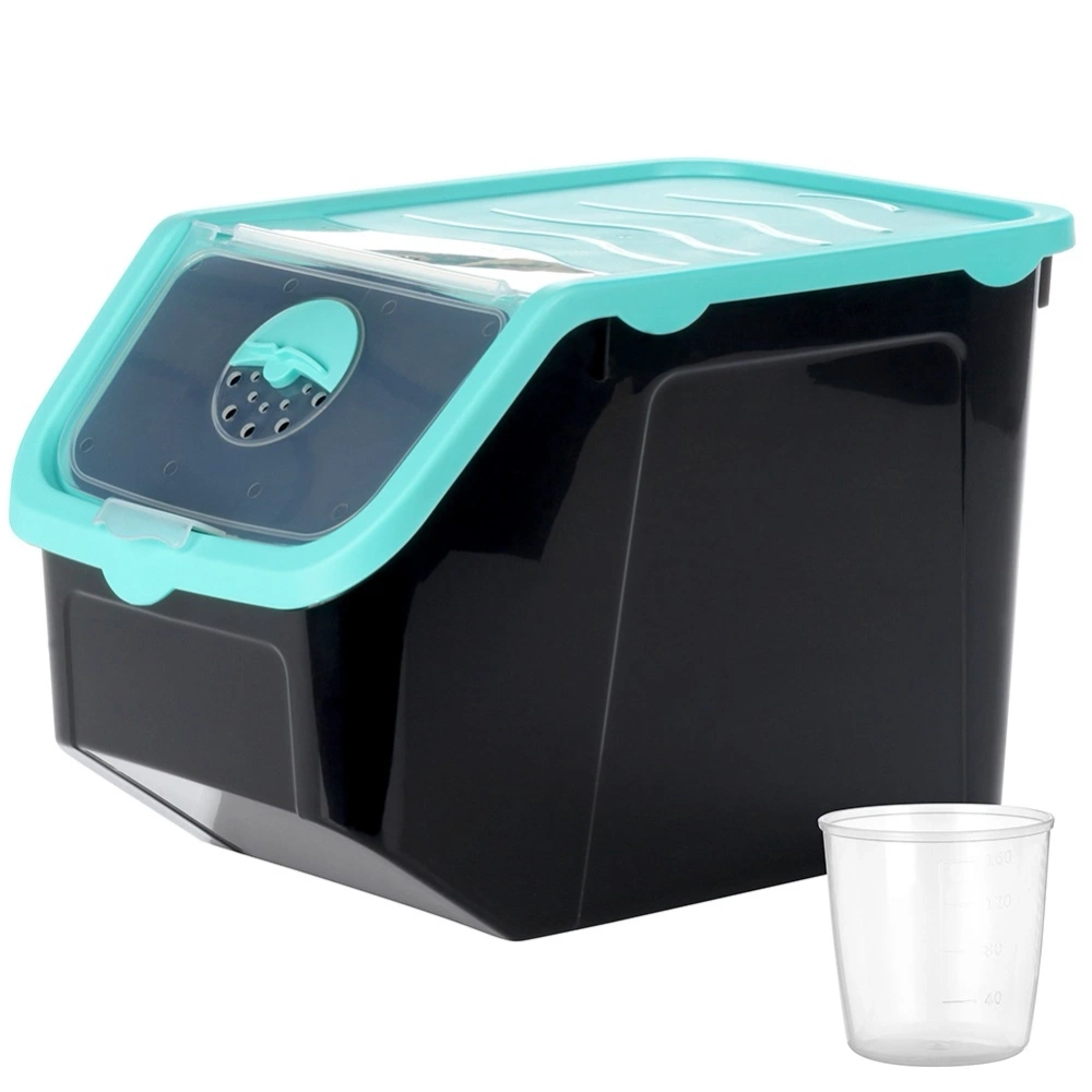 - Praktyczny pojemnik do przechowywania - Praktyczny pojemnik do przechowywania warzyw i owoców. Świetnie sprawdzi się na cebulę, ziemniaki, czosnek, ale również na karmę dla zwierząt czy proszek. W zestawie z miarką. Pojemnik ma wymiary 34 x 23 x 23 cm i pojemność 12 l.